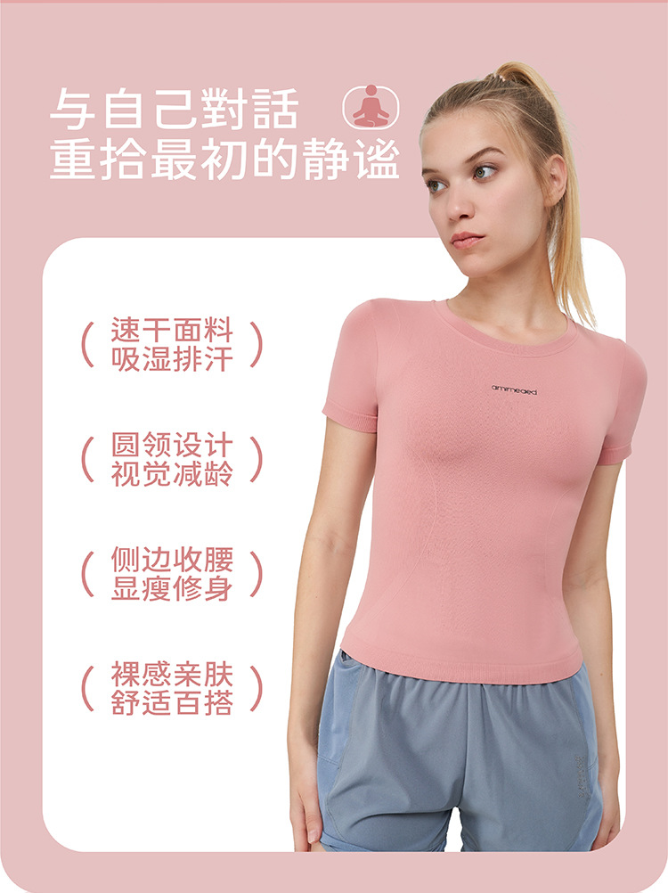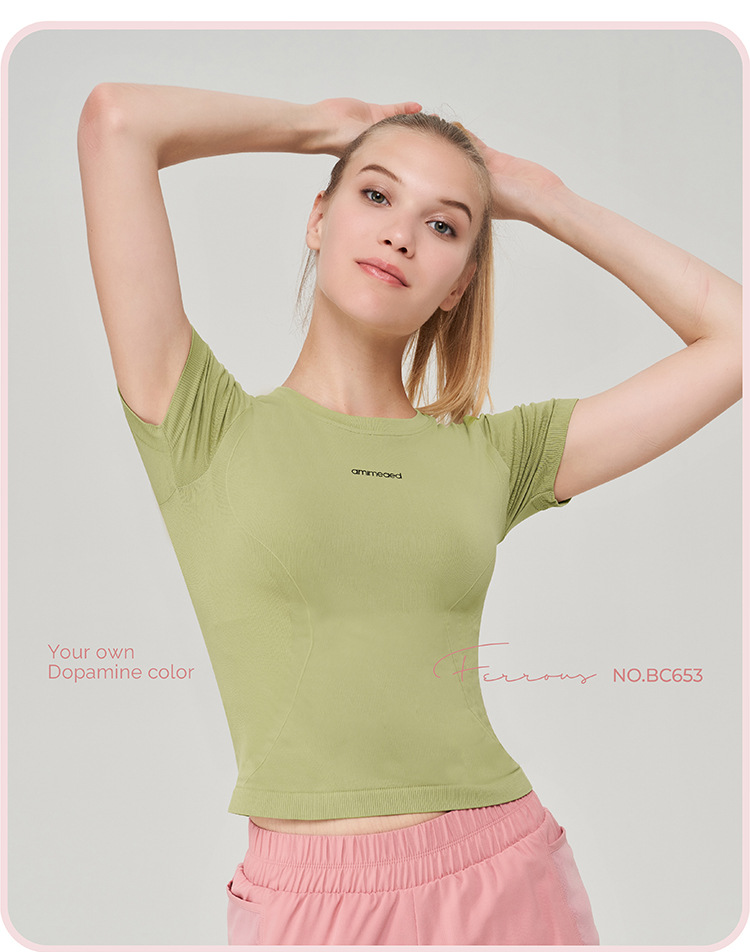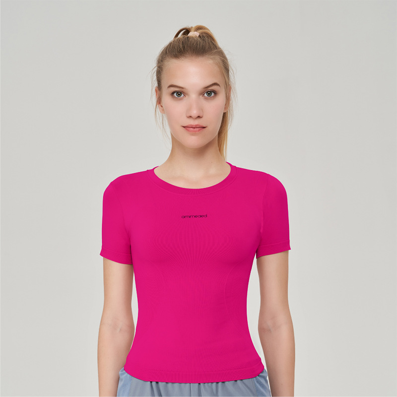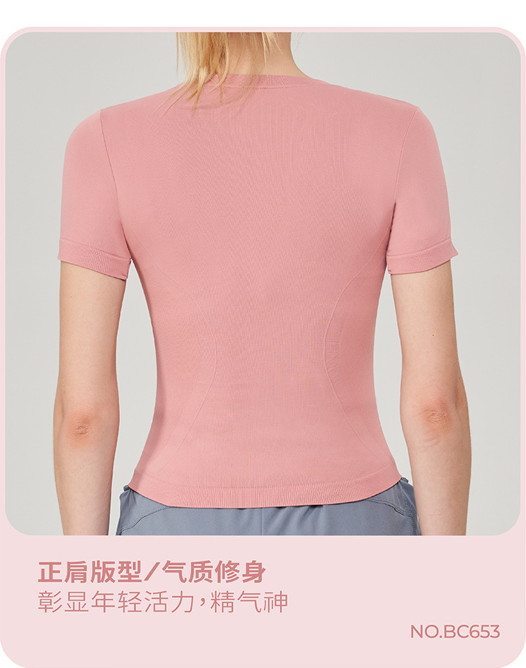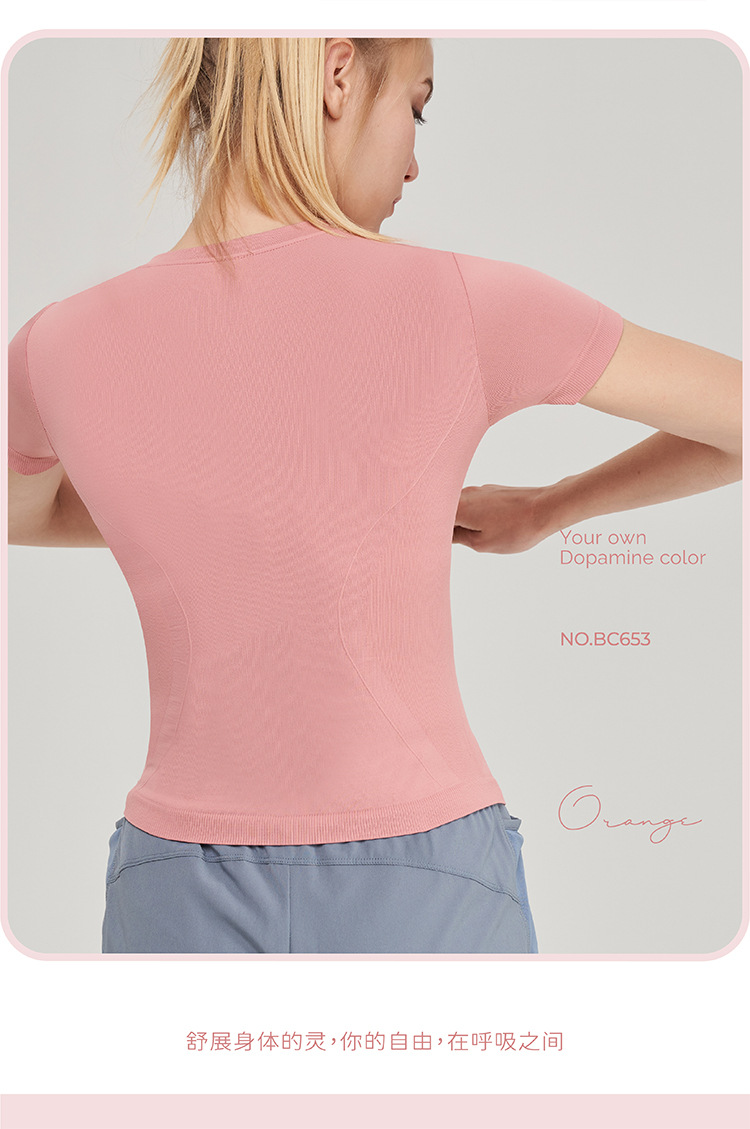 스포츠 반팔 티셔츠 여성의 통기성 땀 흡수 높은 스트레치 빠른 건조 필라테스 슬림 핏 타이트 피트니스 요가 탑