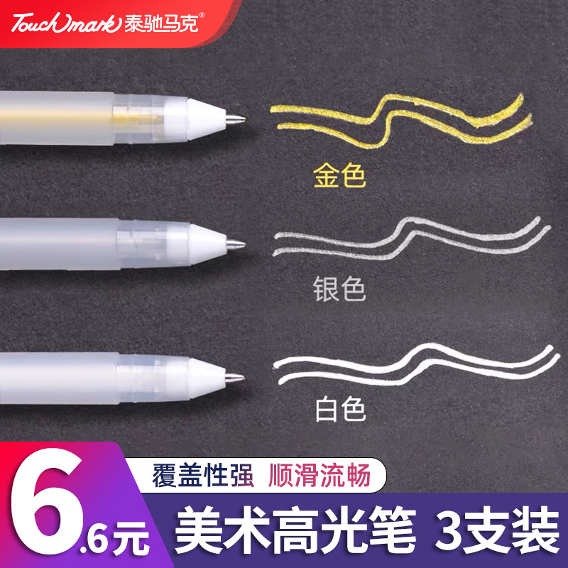 하이 글로우 펜 세트 터치마크 골드 실버 화이트 학생 손으로 그린 디자인 0.8mm 학생 디자인 하이 글로우 펜