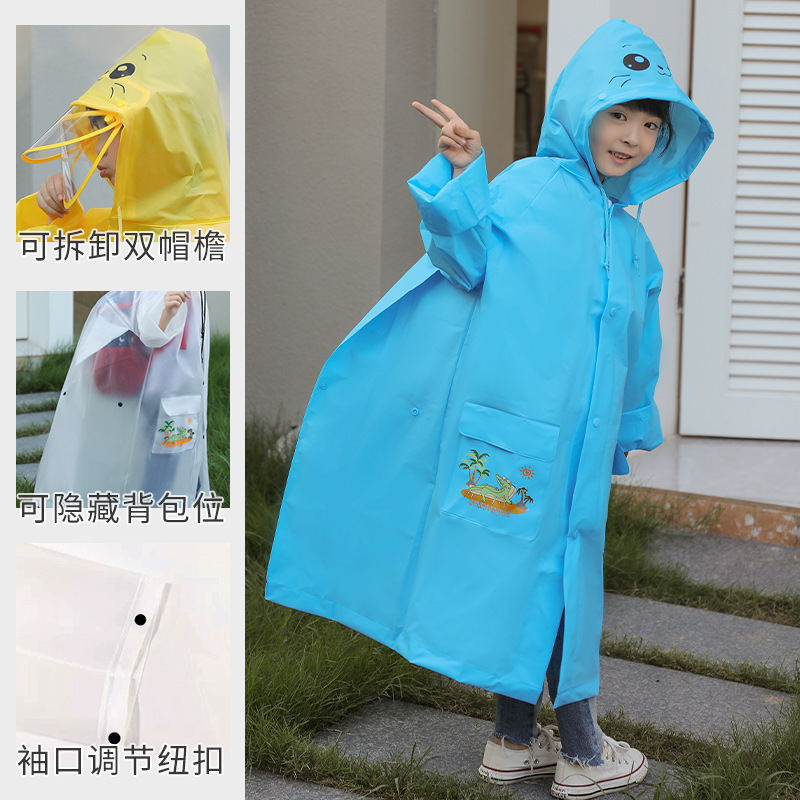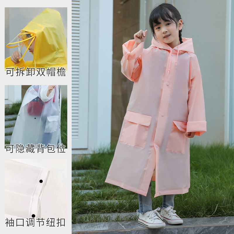 남녀공용 롱형 하이킹 레인코트, 전신 투명, 어린이용 챙, 전동차 레인코트, 분리형 방수 아웃도어 레인코트