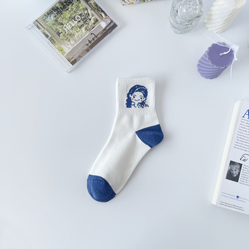 Ziyang 가을과 겨울 새로운 여성 양말 흰색 양말 만화 스포츠 양말 한국 스타일 귀여운 양말 일본 유행 양말