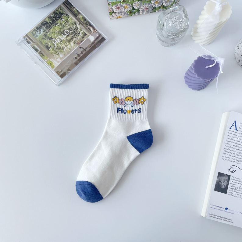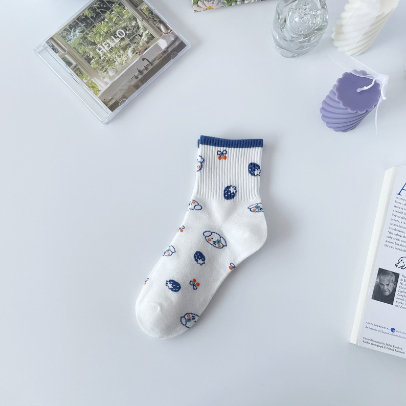 Ziyang 가을과 겨울 새로운 여성 양말 흰색 양말 만화 스포츠 양말 한국 스타일 귀여운 양말 일본 유행 양말스토어 가기