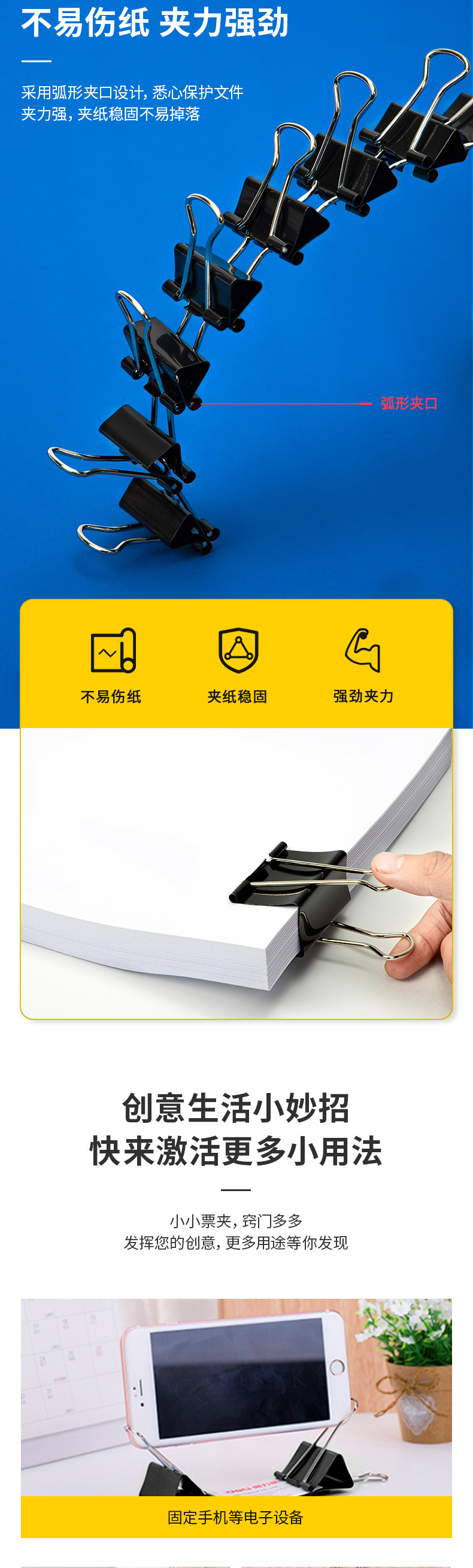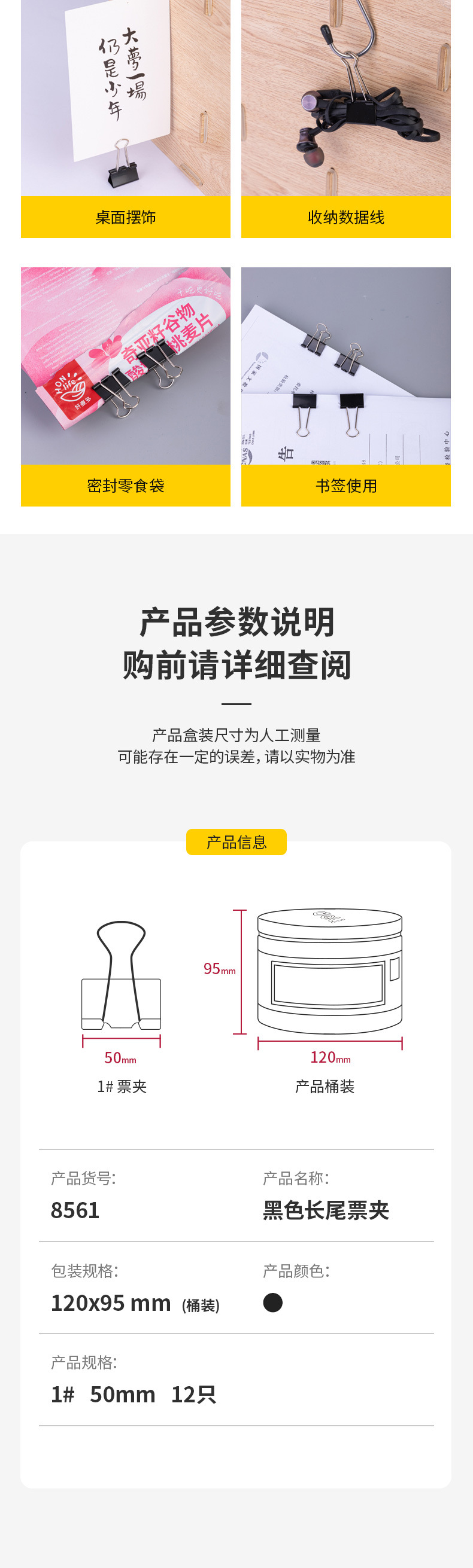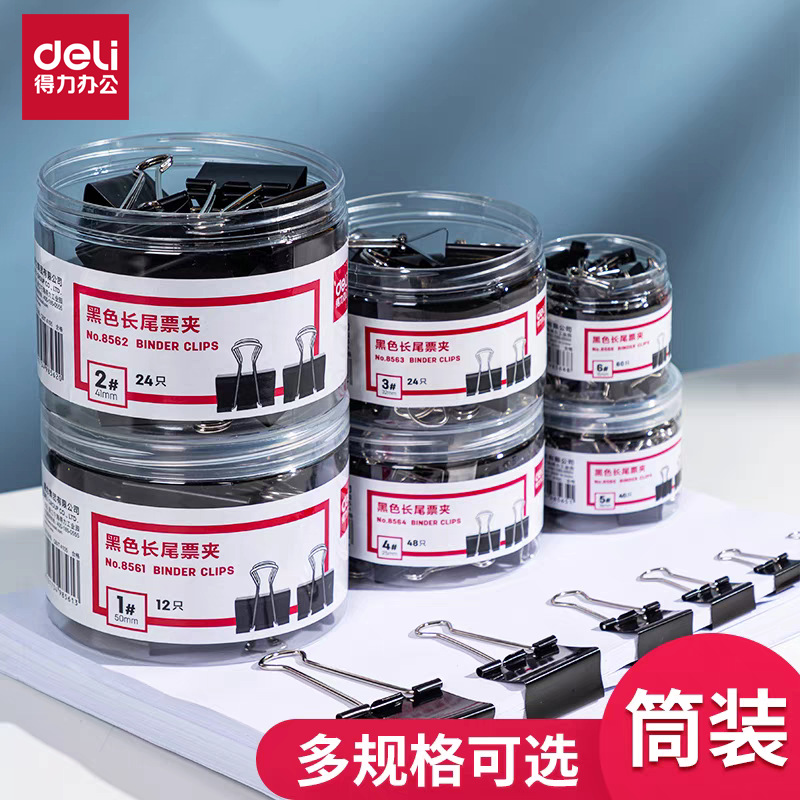 델리 블랙 긴 꼬리 클립 지폐 클립 멀티 사이즈 옵션 대형 및 중형 스몰 사이즈 금속 클립 비즈니스 사무실 긴 꼬리 클립스토어 가기