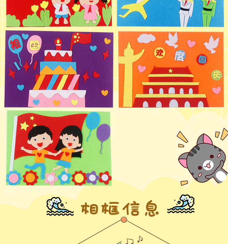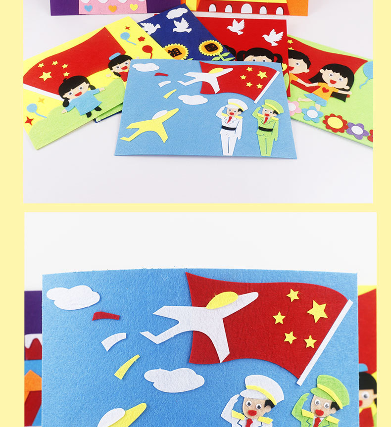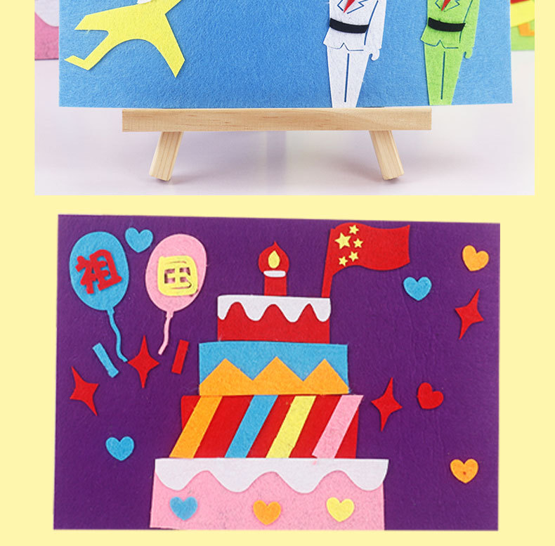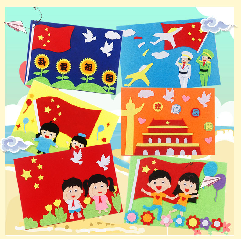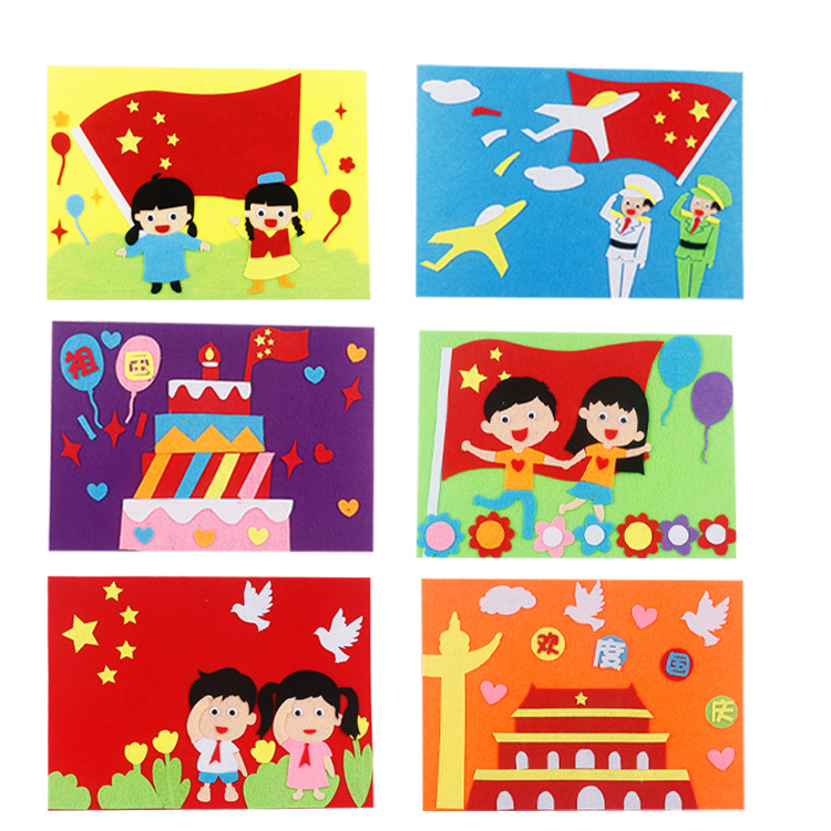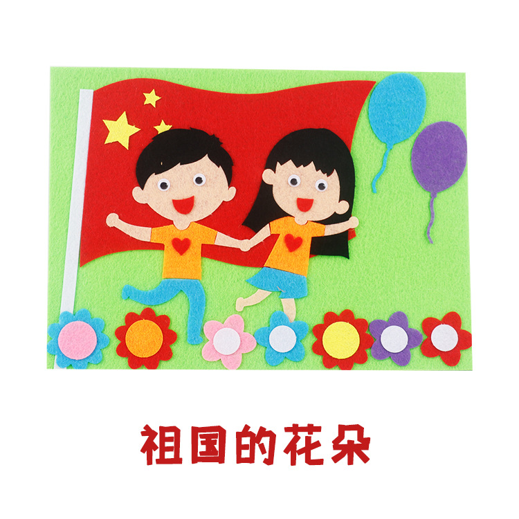 국경일 어린이 수제 부직포 스티커 DIY 재료 패키지 유치원 교육 창조적 인 생산 스티커 퍼즐 그림스토어 가기