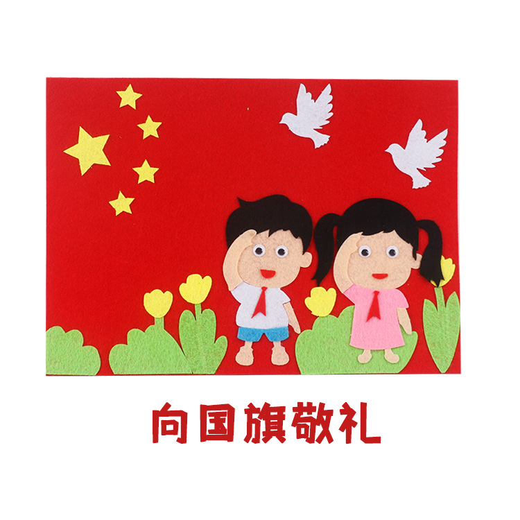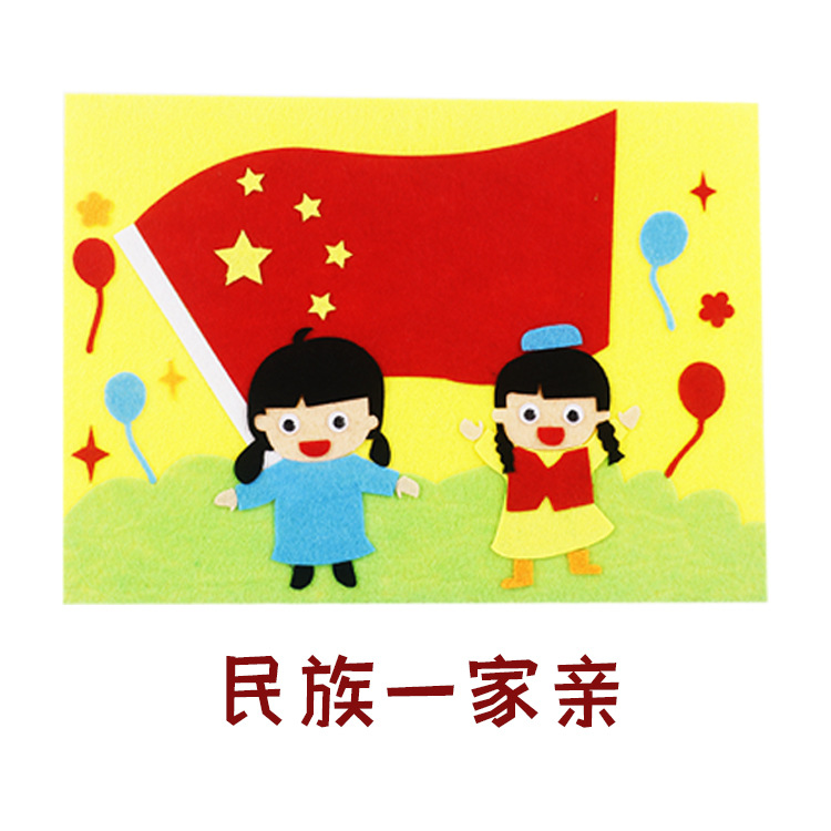 국경일 어린이 수제 부직포 스티커 DIY 재료 패키지 유치원 교육 창조적 인 생산 스티커 퍼즐 그림