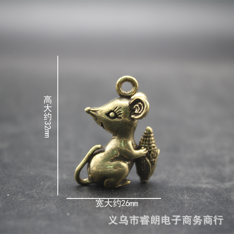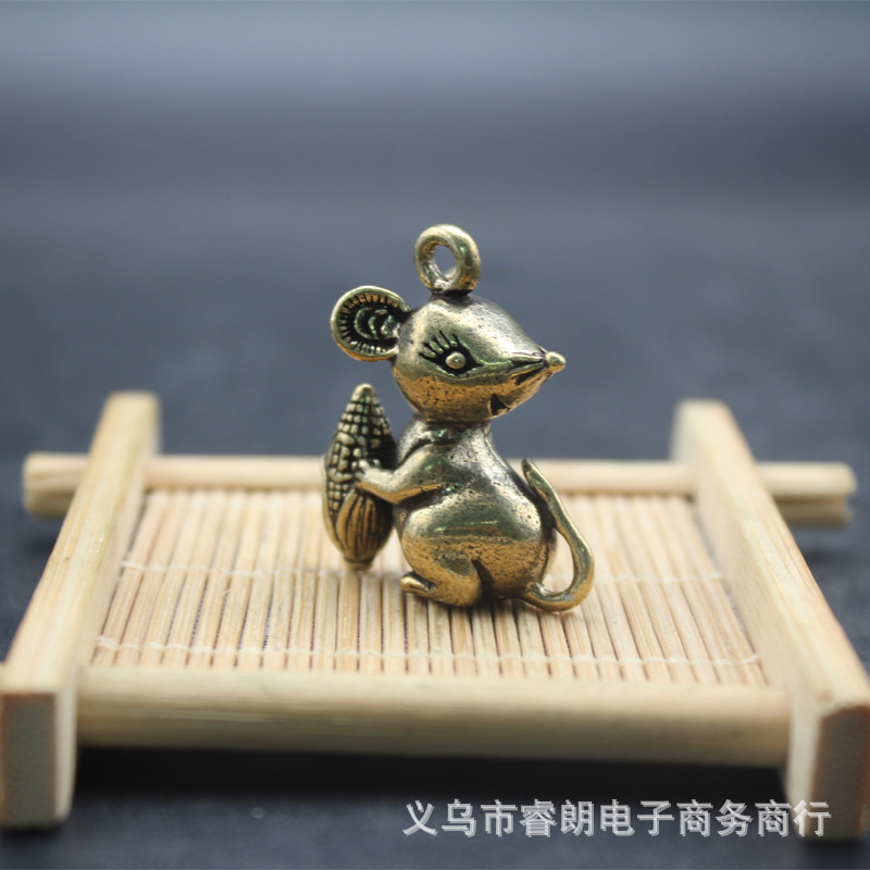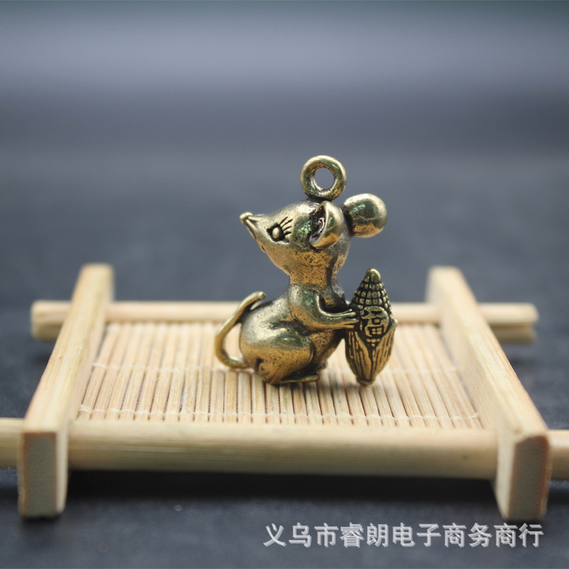 황동 왕푸 옥수수 마우스 남성용 및 여성용 자동차 키 체인 펜던트 럭키 데스크탑 소형 장식품 휴대 손잡이스토어 가기