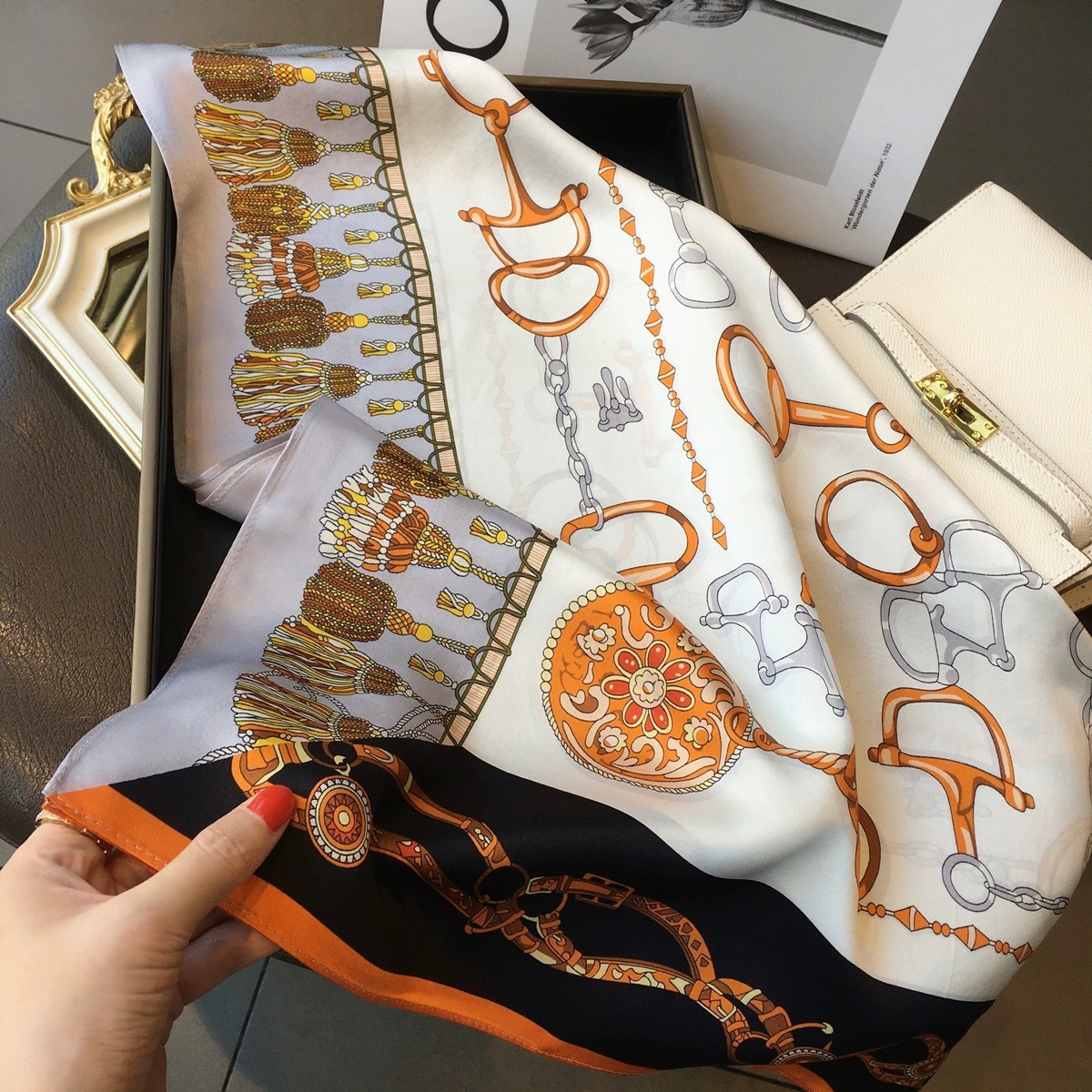 봄날 필요! 70 작은 사각형 스카프 변경 나비 넥타이 헤어 벨트 작업장 통근 스카프 3 대 1 우아한 공기 느낌