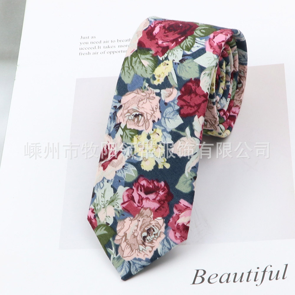 남자의 유럽과 미국 면 인쇄 넥타이 도매 캐주얼 남성 넥타이 재고 꽃 넥타이