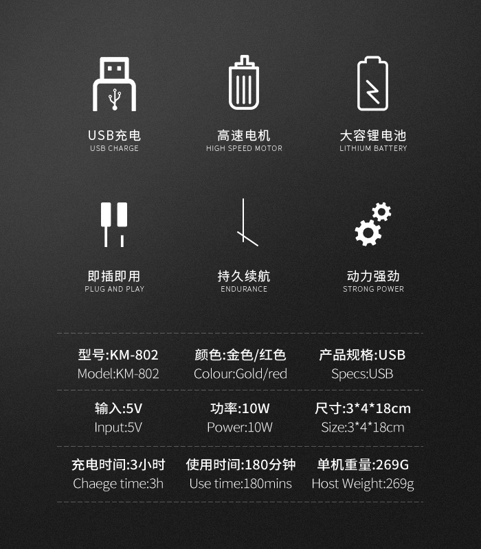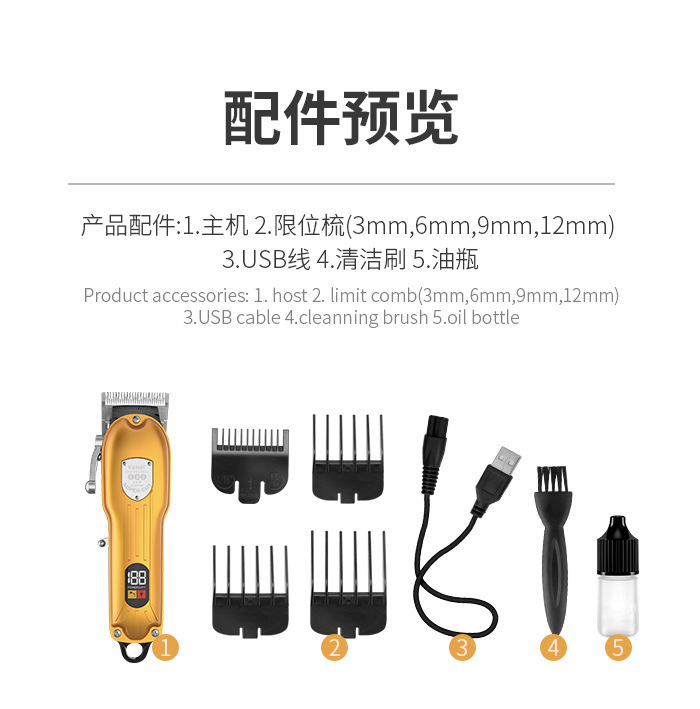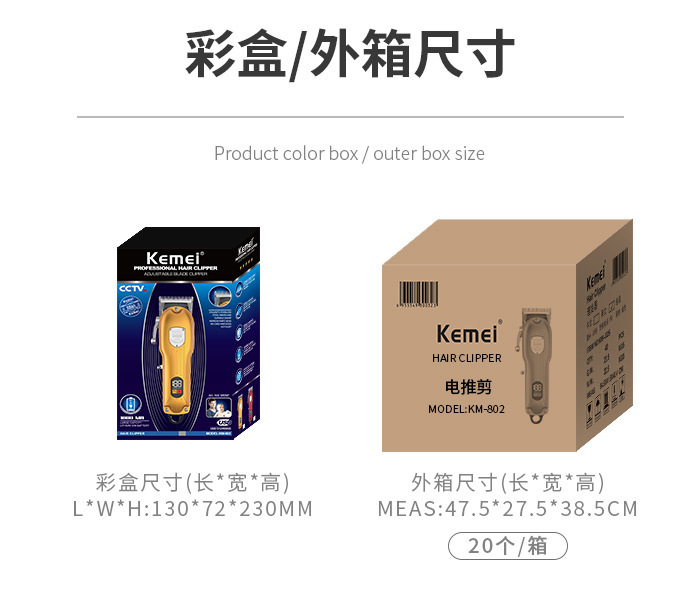 코미 전기 헤어 클리퍼 KM-802 금속 바디 LED 디지털 헤어 살롱 헤어 클리퍼
