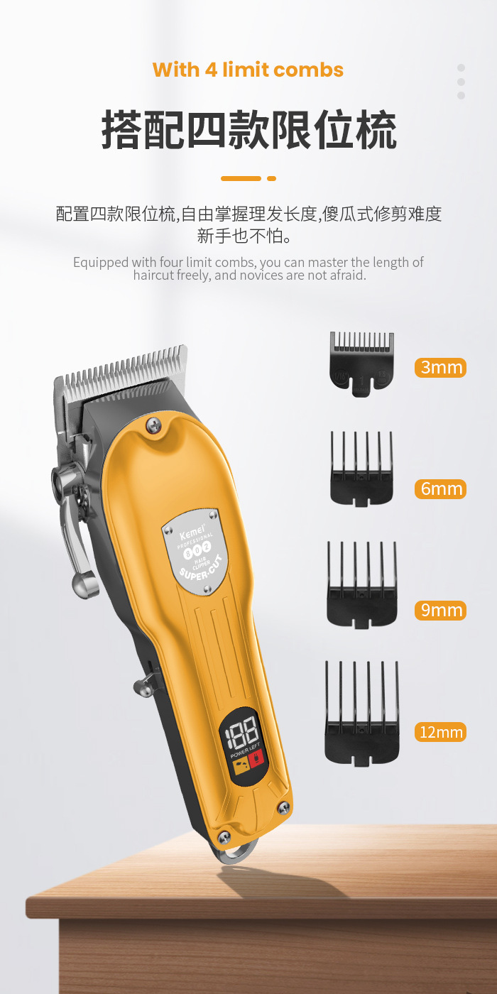 코미 전기 헤어 클리퍼 KM-802 금속 바디 LED 디지털 헤어 살롱 헤어 클리퍼스토어 가기