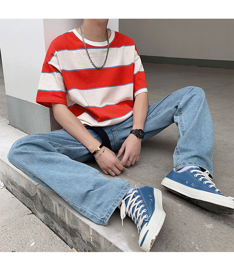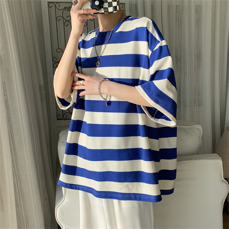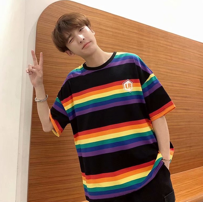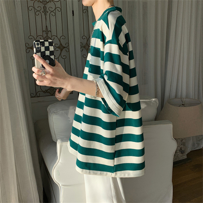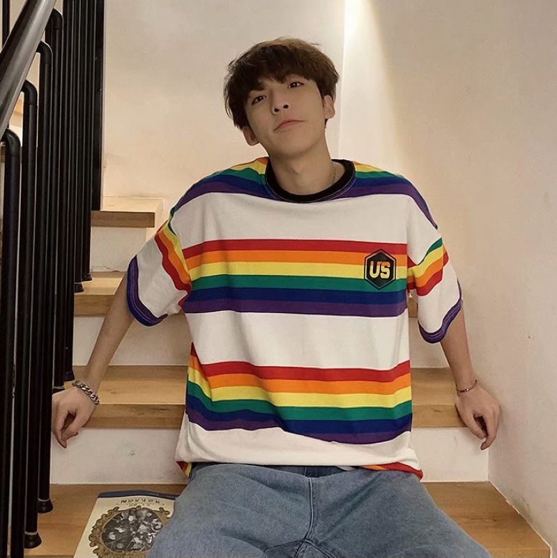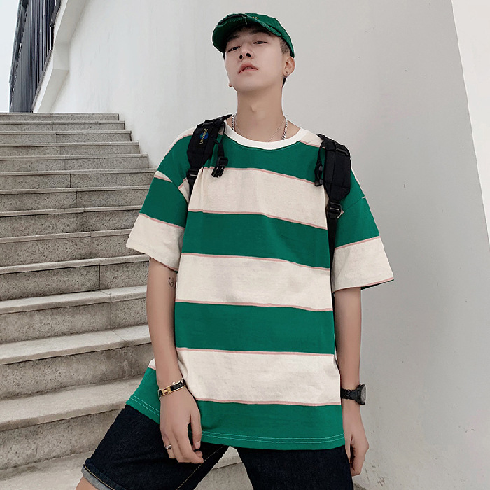 크로스보더 동남아시아 중간 길이 플러스 사이즈 한국식 여름 타이염색 새로운 반팔 티셔츠 남성용 루즈한 탑 홍콩 스타일 여성스토어 가기