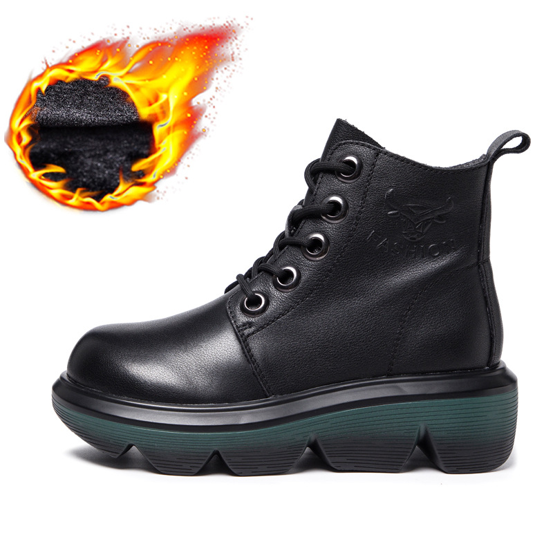 2025년 가을 겨울 신상 민족 복고풍 마틴 부츠 끈이 달린 두꺼운 밑창 높이 증가 1층 소가죽 여성용 숏부츠스토어 가기