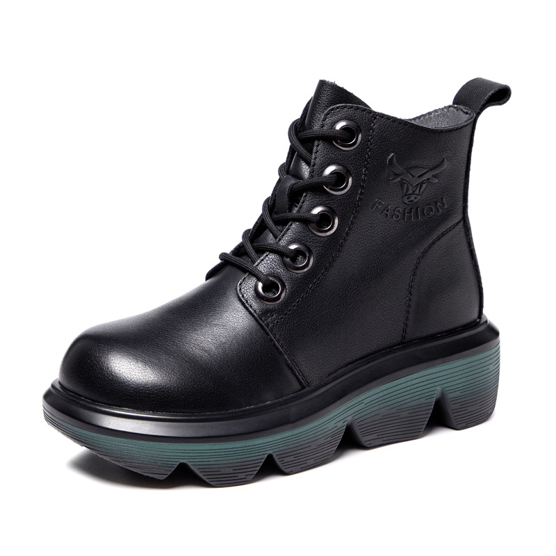 2025년 가을 겨울 신상 민족 복고풍 마틴 부츠 끈이 달린 두꺼운 밑창 높이 증가 1층 소가죽 여성용 숏부츠