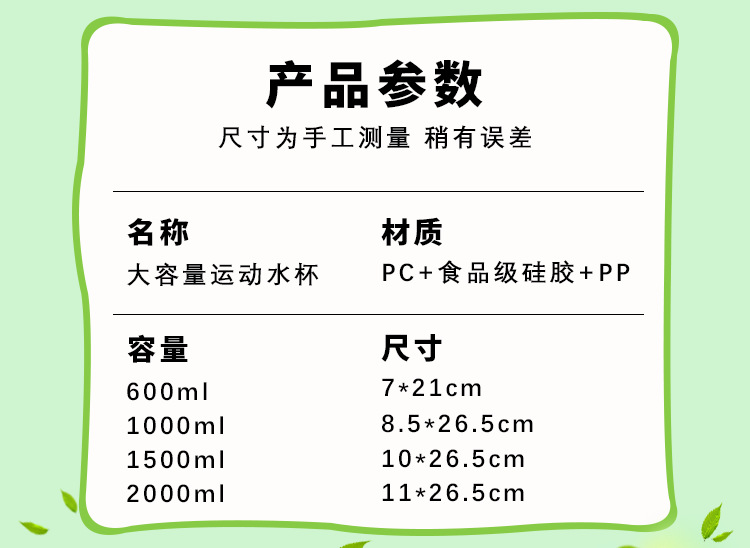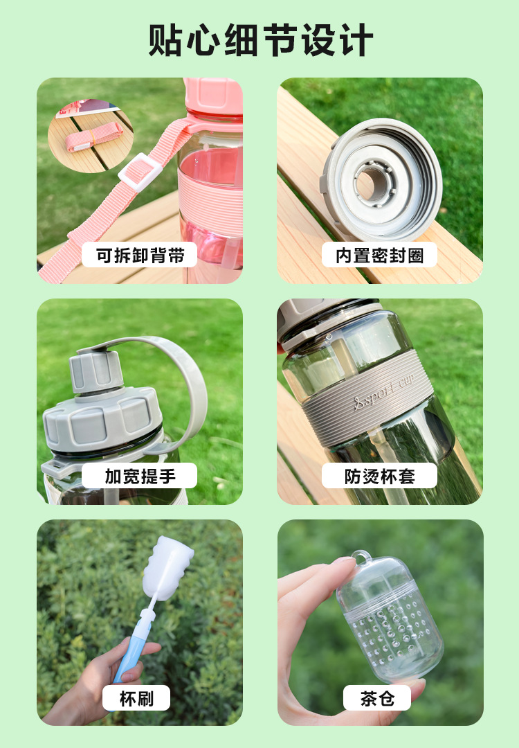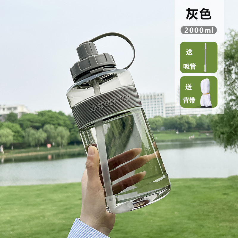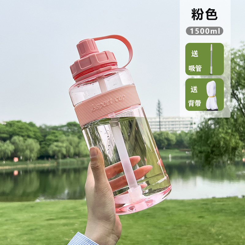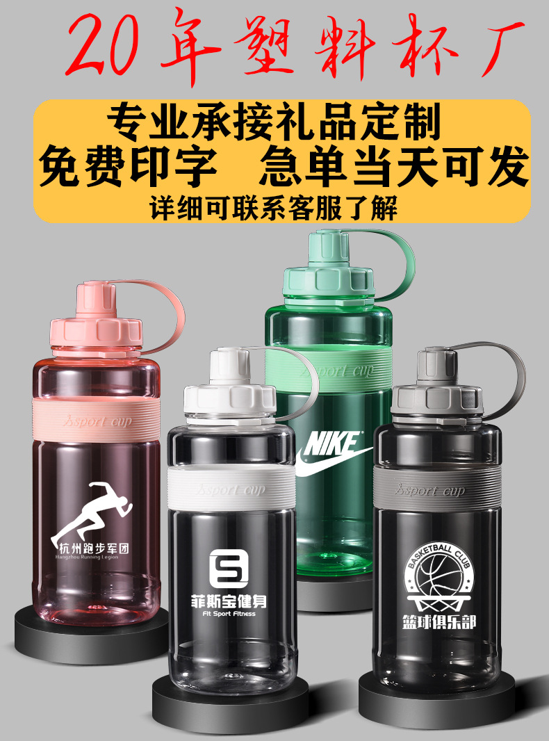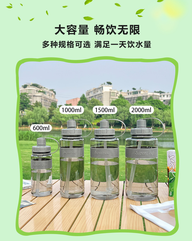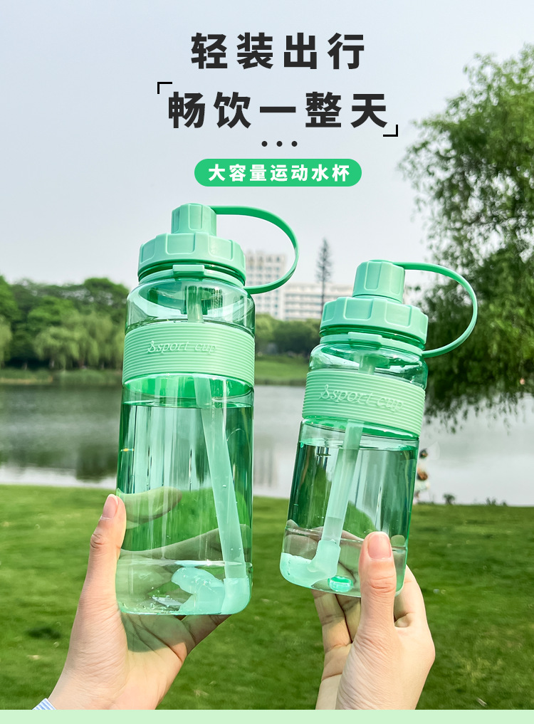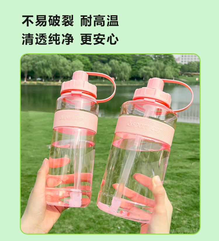 대용량 플라스틱 물 컵 야외 휴대용 스포츠 피트니스 플라스틱 컵 공간 냄비 고온 밀짚 플라스틱 컵