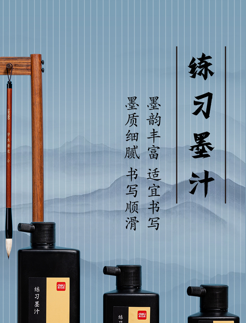 델리 문구 74291 글쓰기 서예 및 그림 잉크 연구 4 가지 보물 서예 특수 잉크 잉크 대형, 중형 및 소형 단일 병