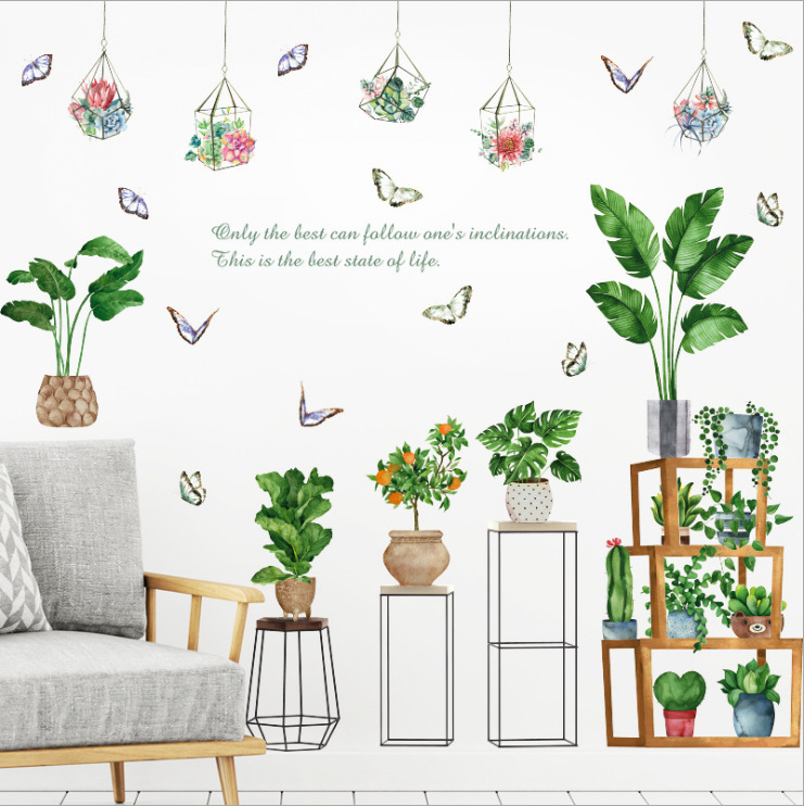 새로운 HT 녹색 식물 거북이 잎 화분에 심은 펜던트 침실 입구 상업용 벽 미화 장식 벽 스티커스토어 가기