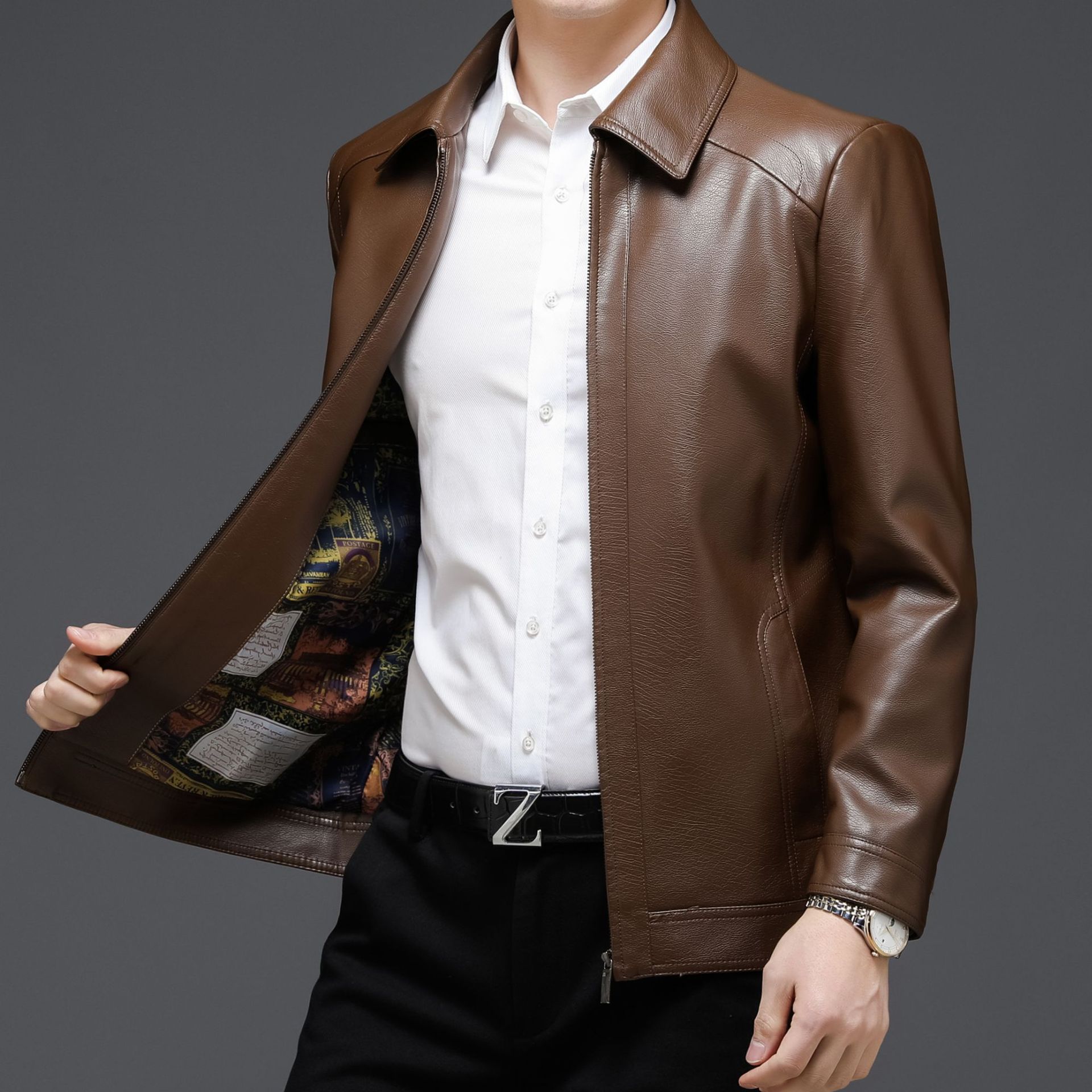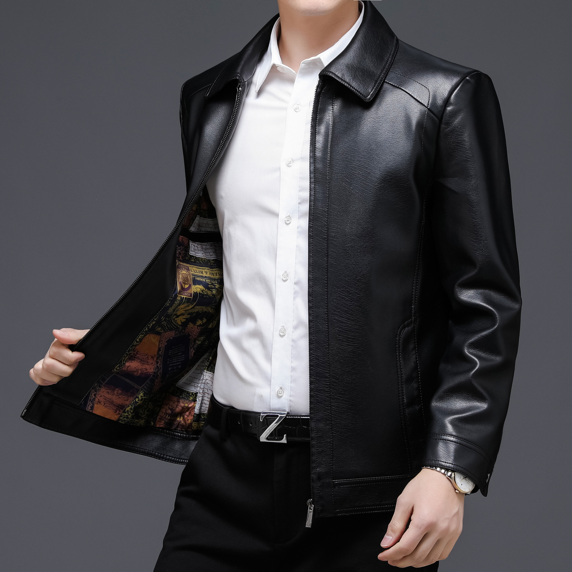 2021 봄과 가을 얇은 패션 가죽 남성 칼라 가죽 자켓 중년 아버지 가죽 코트 머리카락 세대스토어 가기