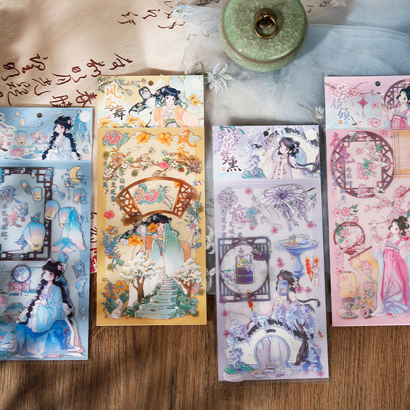 沐染版式pet贴纸 洛煌花朝系列 古风少女diy手帐装饰素材贴纸包