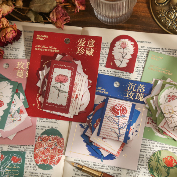 纸先生烫金贴纸包 玫瑰史诗系列 复古文艺花卉植物diy手帐装饰拼