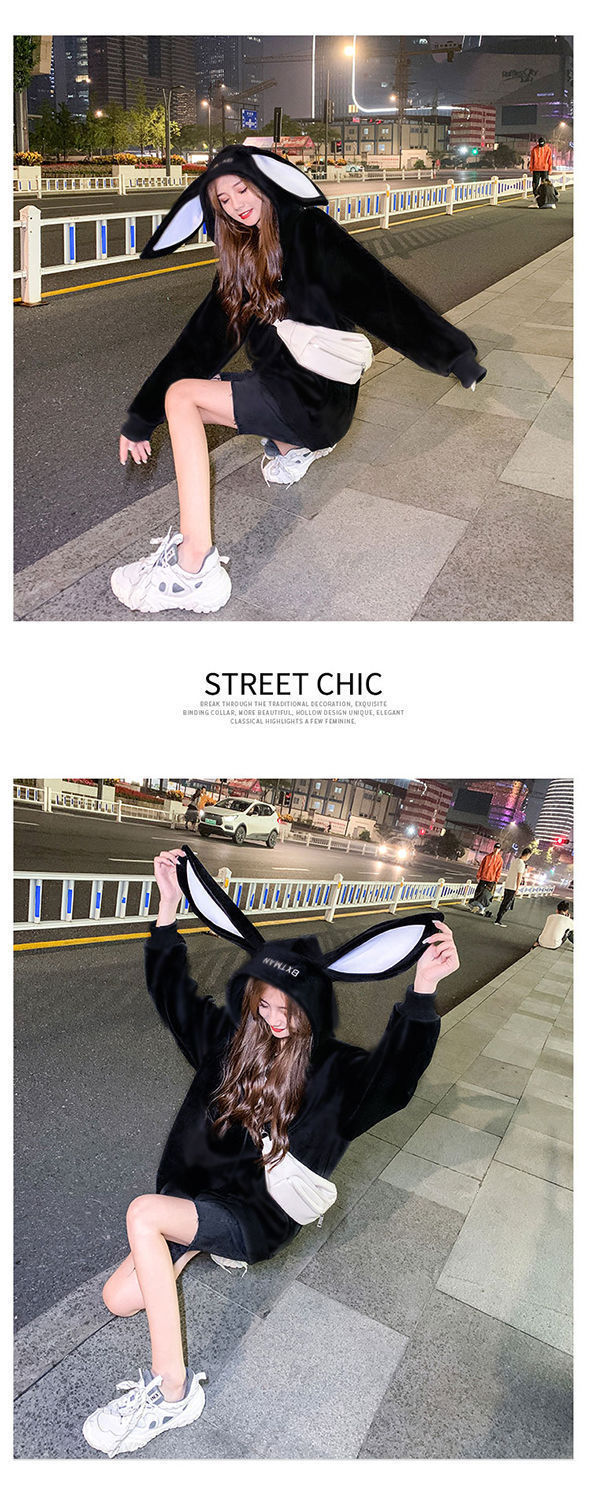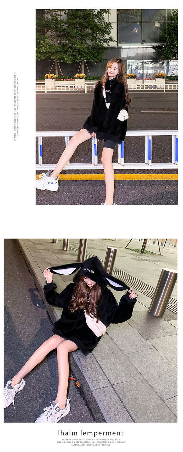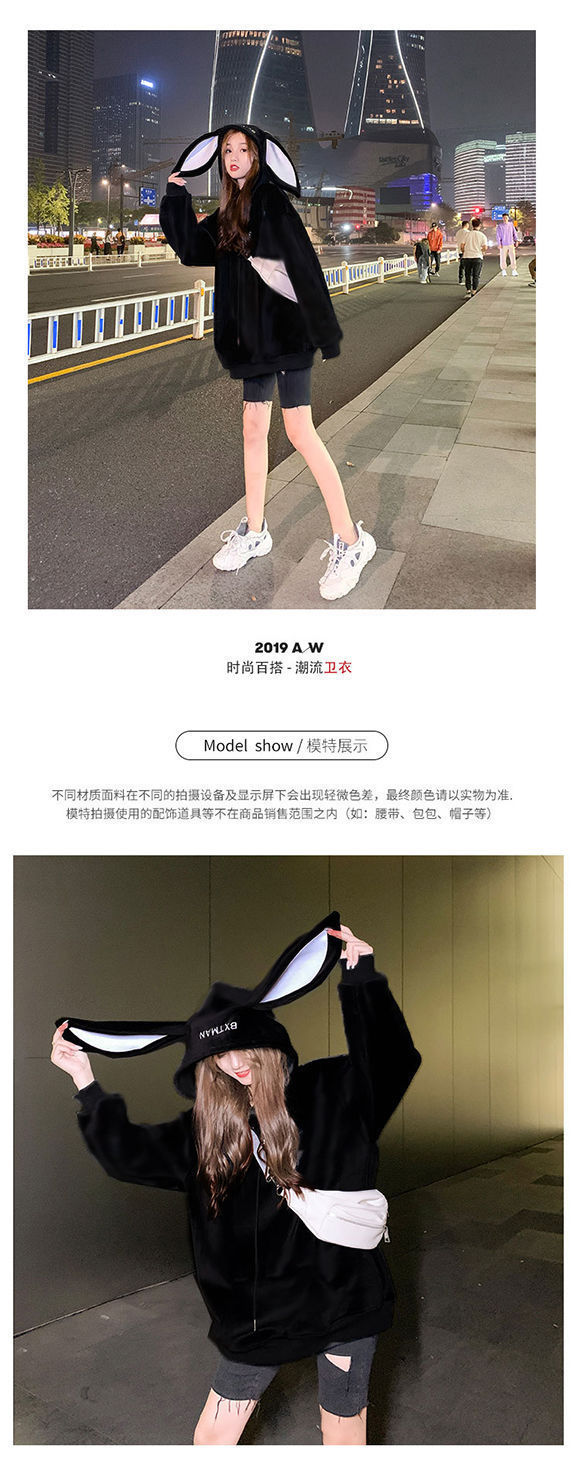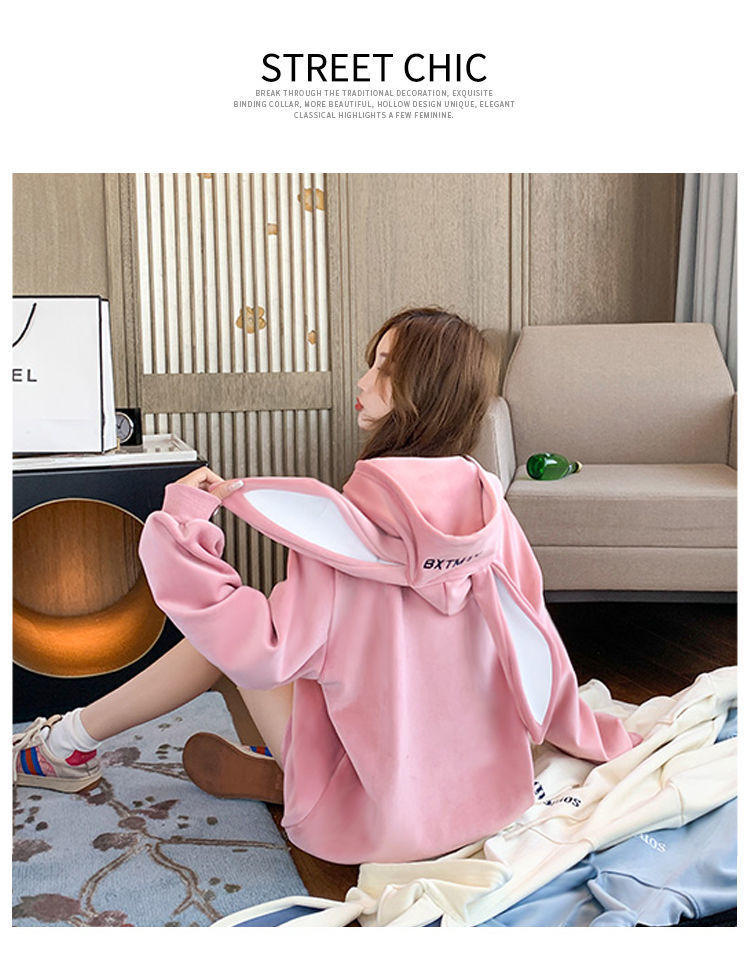토끼 귀 스웨터 여자의 가을과 겨울 기모 두꺼운 후드 플러스 사이즈 외국 스타일 재킷 에 국경 간 대외 무역 도매스토어 가기