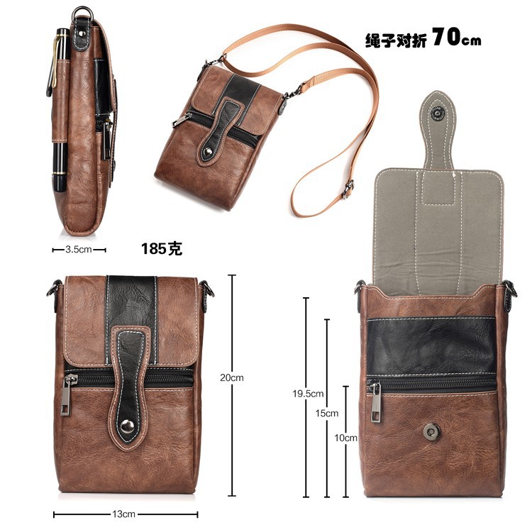 内有双层,最大可放7.12寸以下的手机,可穿皮带,配背带绳!