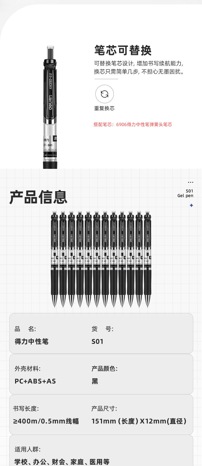 델리 문구 S01 워터 펜 사인 펜 프레스 젤 펜 0.5 학생 블랙 카본 오피스 사인 펜