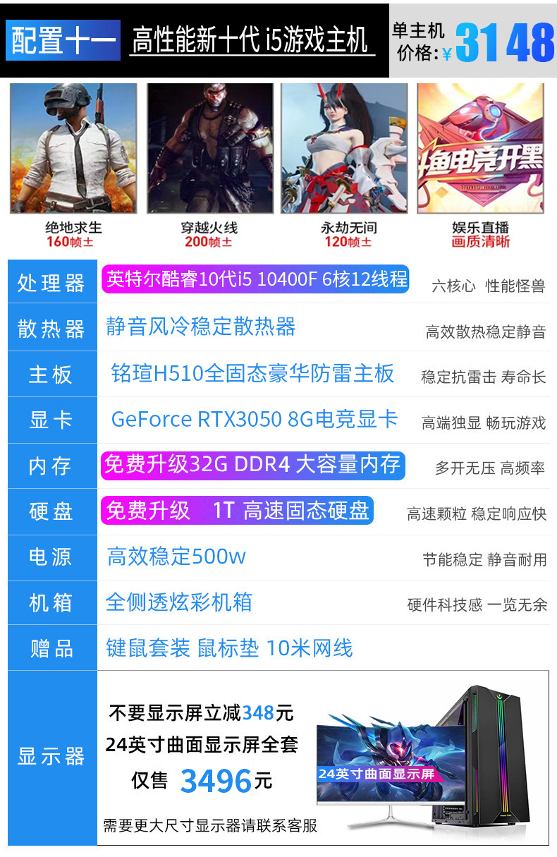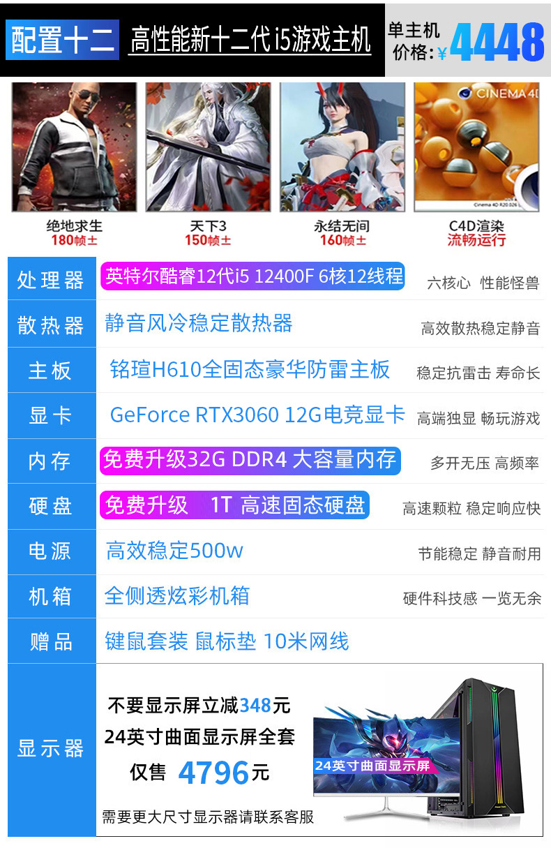 i7i9 레벨 컴퓨터 호스트 데스크탑 12 코어 RTX3060 12G 독립 디스플레이 1660 조립 기계 게임 사무실