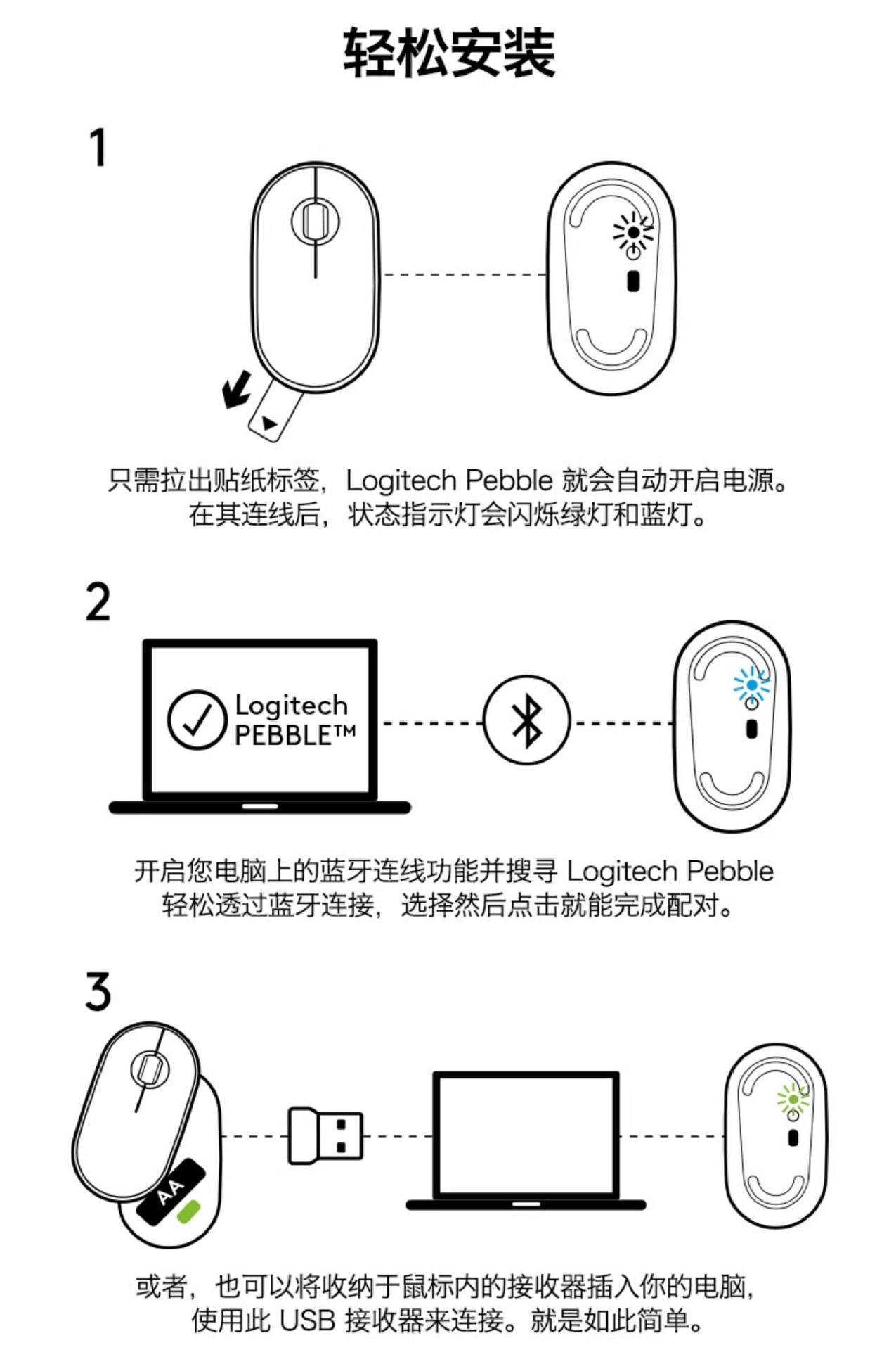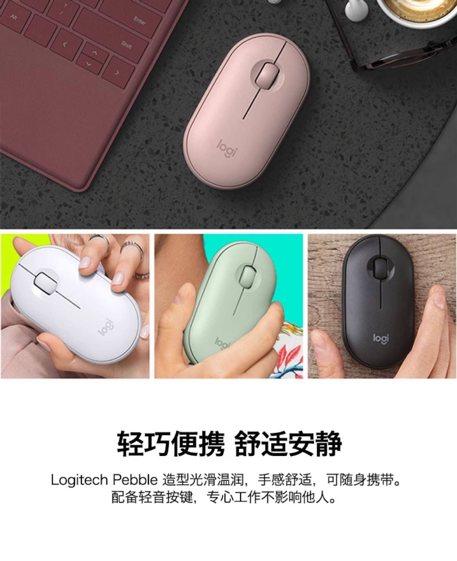 정품 페블 무선 마우스, 저소음 블루투스, 페블형 데스크탑 컴퓨터, 노트북, 비즈니스, 사무실, 가정용