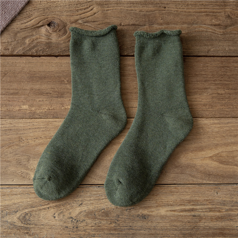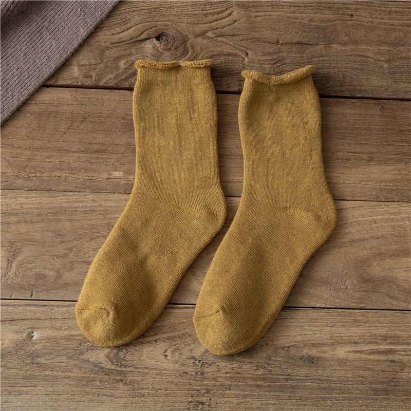 일본 단색 두꺼운 양말 중년 및 노인 여성용 중간 길이 양말 가을과 겨울 테리 타월 느슨한 입 감금 양말 겨울