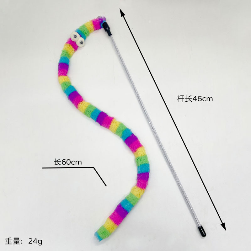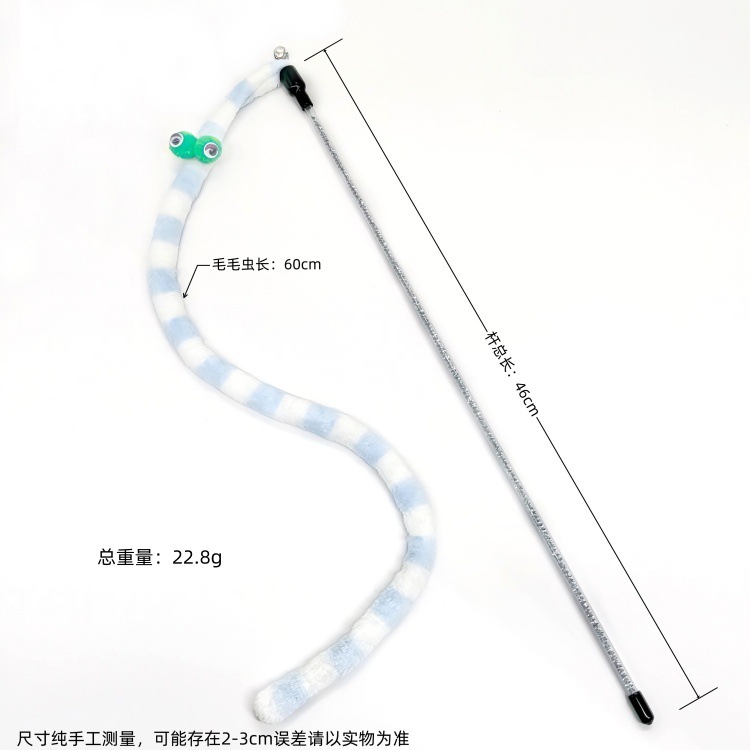 Xingzhi 고양이 긴 애벌레 고양이 스틱 벨 물린 방지 봉제 고양이 장난감 슈퍼 귀여운 큰 눈 봉제