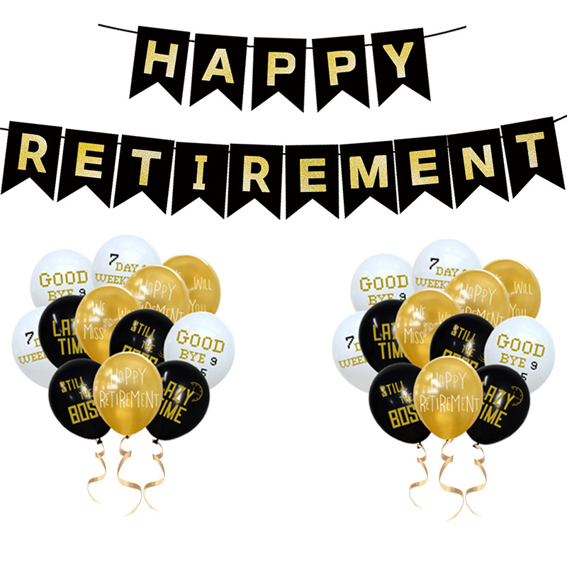 亚马逊热销HAPPY RETIREMENT 退休派对撒粉拉旗气球套餐