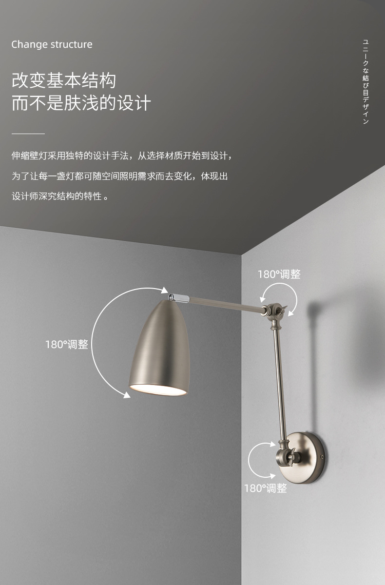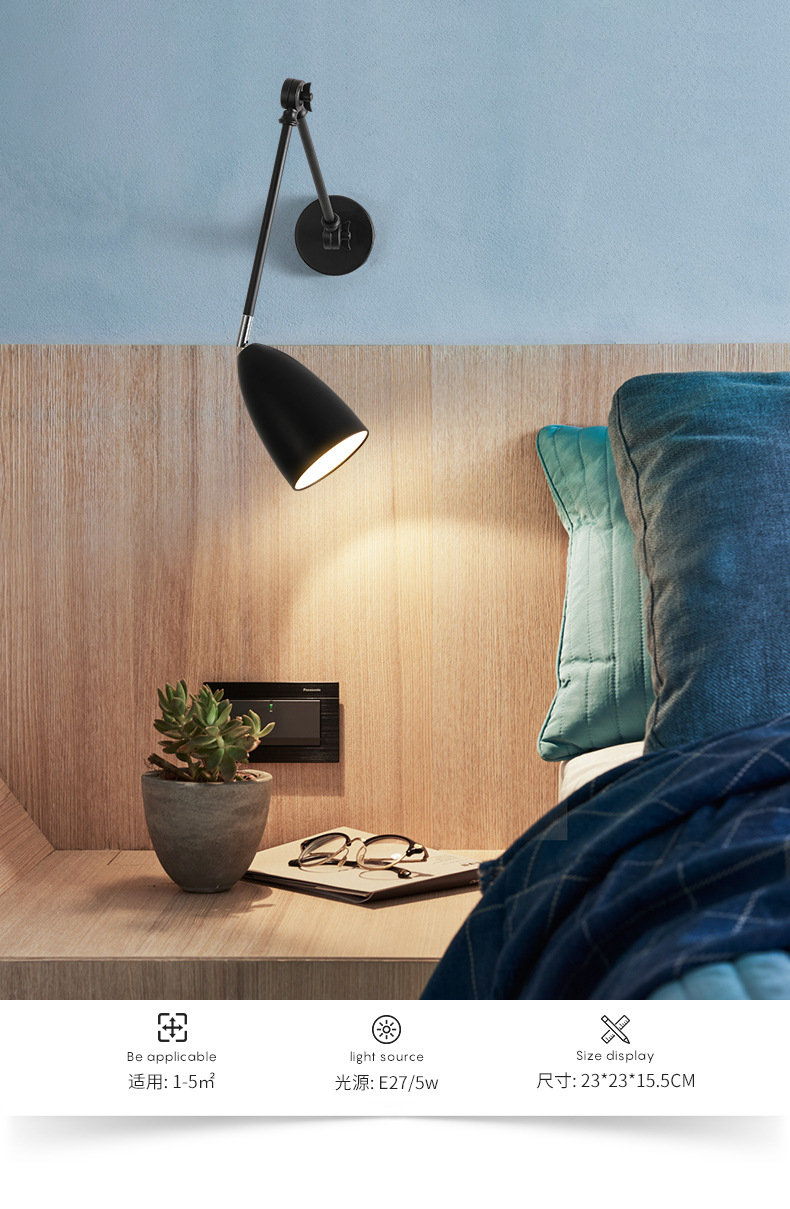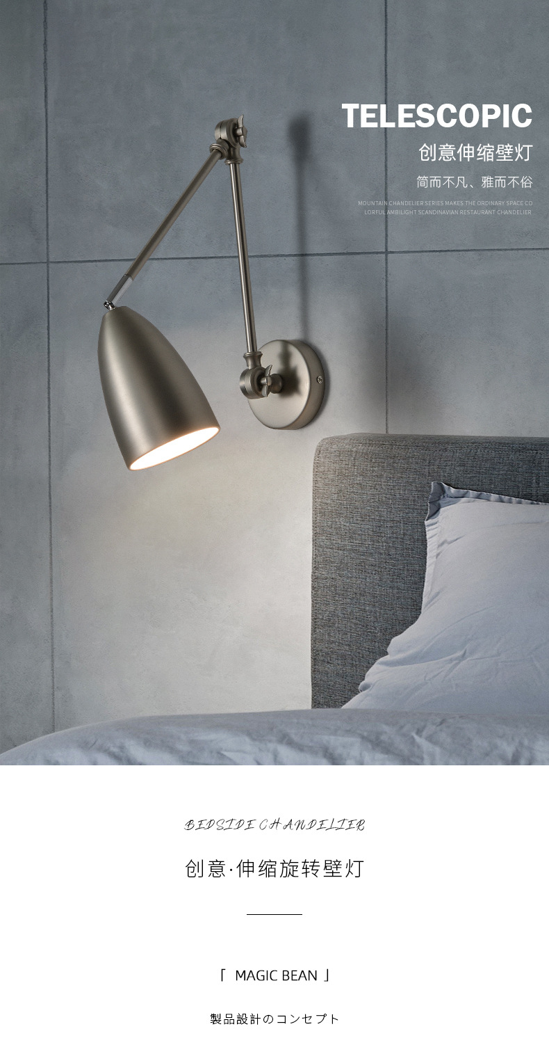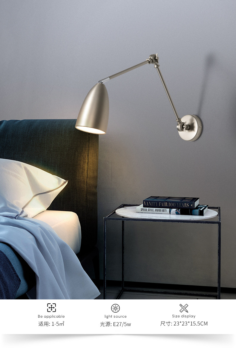 침대 옆 벽 램프 침실 로커 회전 크로스 보더 현대 간단한 망원경 연구 독서 레트로 산업 바람 벽 램프