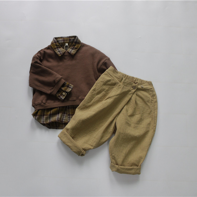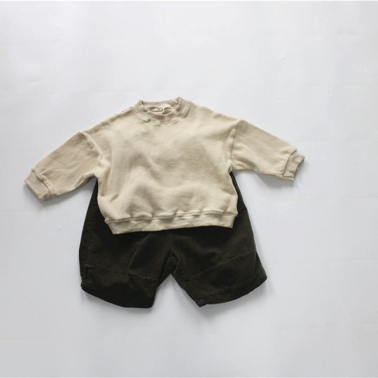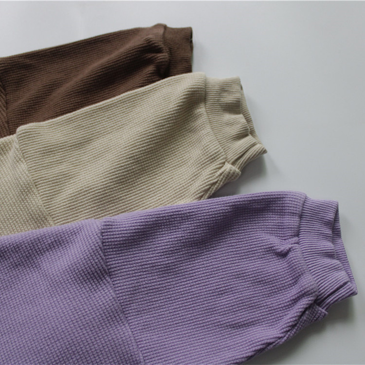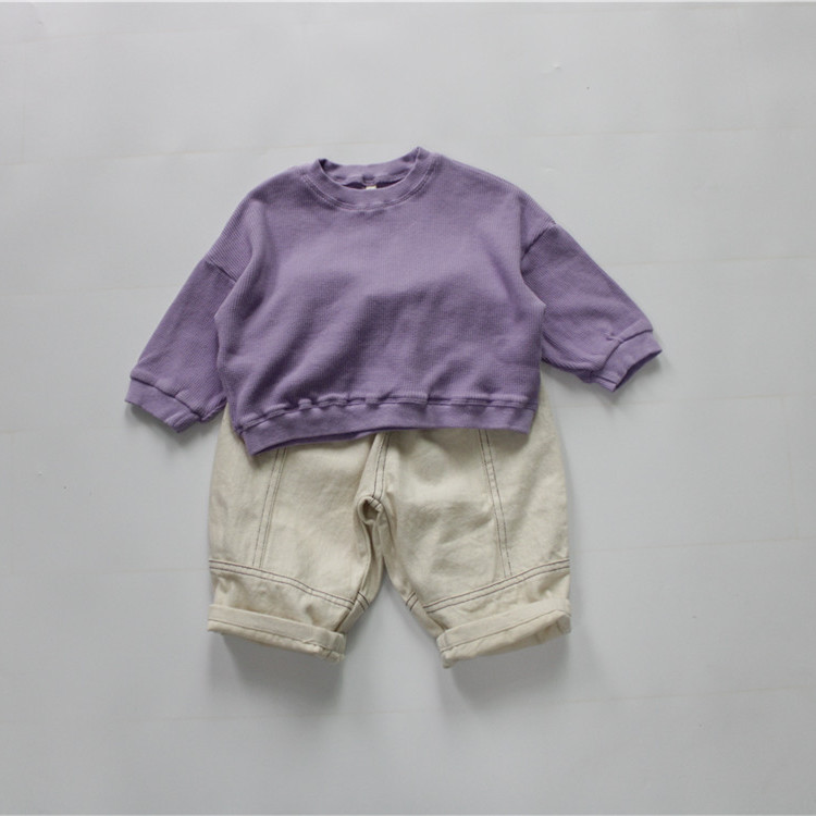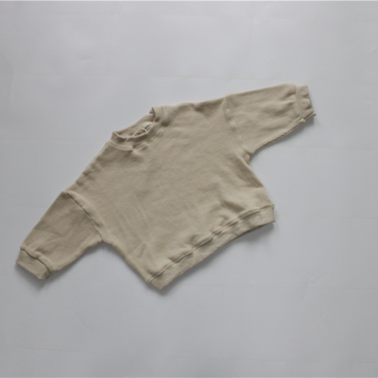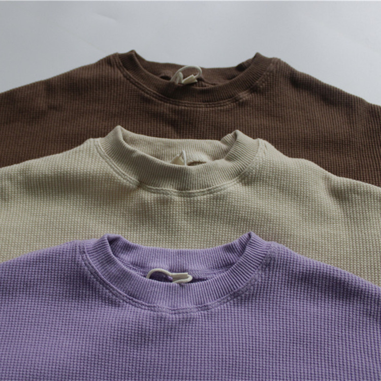 가을 어린이 티셔츠 긴팔 소년 풀오버 2024 한국어 버전 와플 박쥐 슬리브 라운드 넥 소녀 탑 카테고리 A