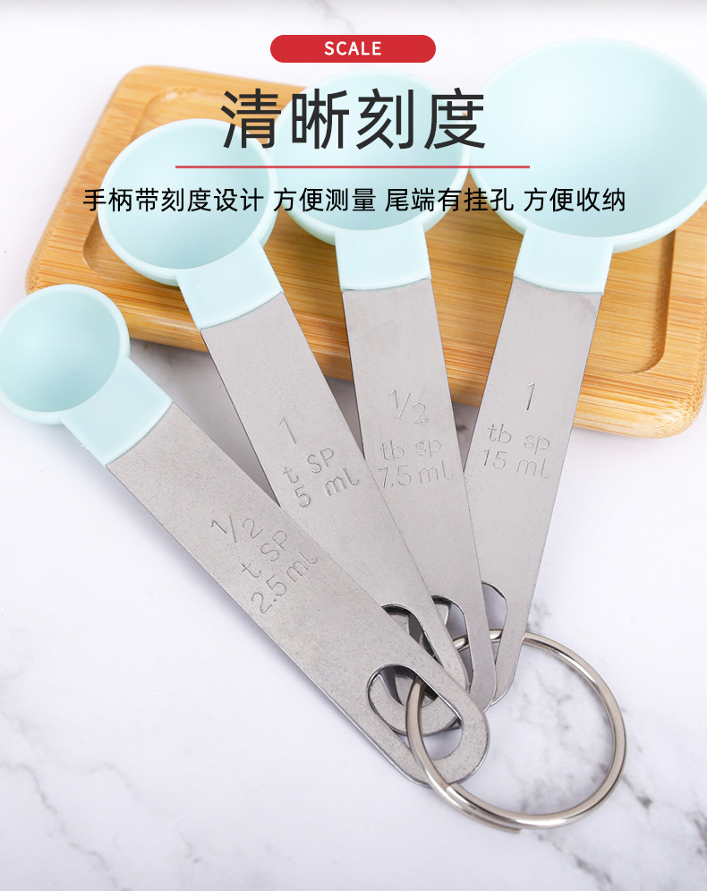 가정용 주방 플라스틱 측정 숟가락 측정 컵 세트 스테인레스 스틸 베이킹 핸들 측정 컵 측정 숟가락 8 피스 세트 가정용 파우더 스푼