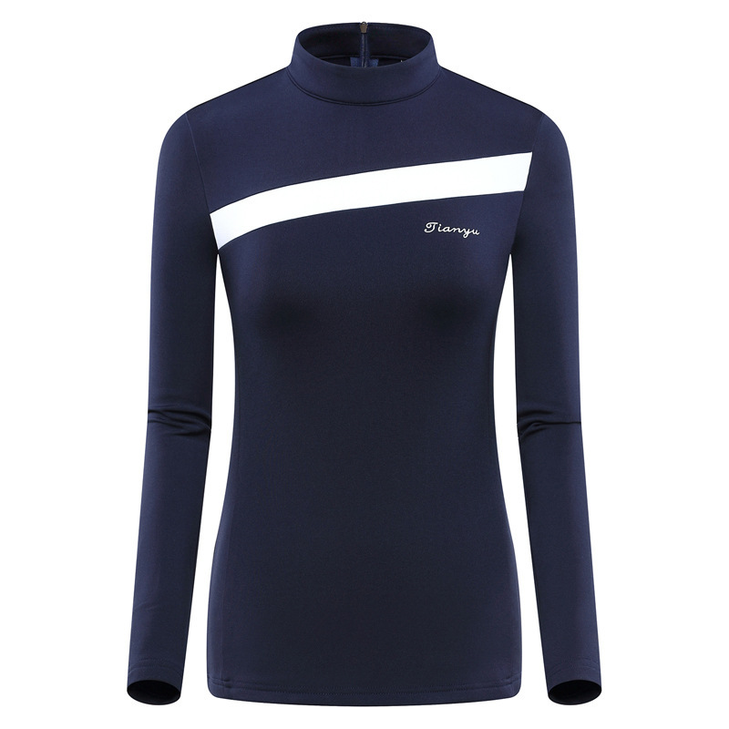 가을과 겨울 기모 골프 의류 여성의 긴팔 볼 옷 티셔츠 따뜻한 스탠드 칼라 스포츠 의류 기본 셔츠