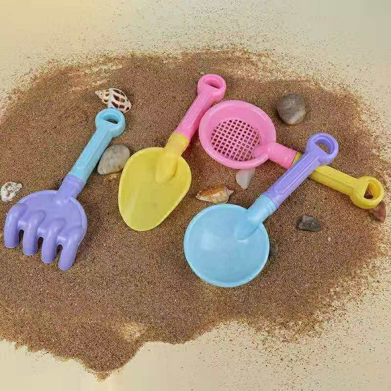 • 4 모래 놀이 도구 + 무작위 색상 해변 양동이