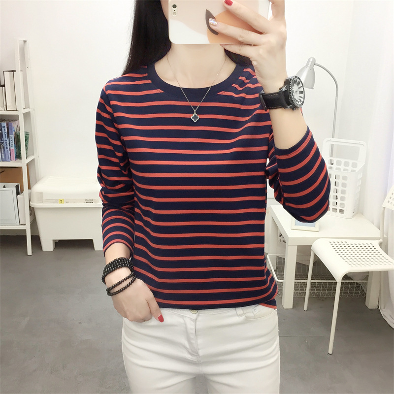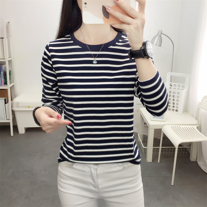 가을 옷 2024 새로운 큰 크기 느슨한 슬리밍 긴 소매 티셔츠 여성용 가을 옷 바깥 옷 스트라이프베이스 셔츠 탑스토어 가기