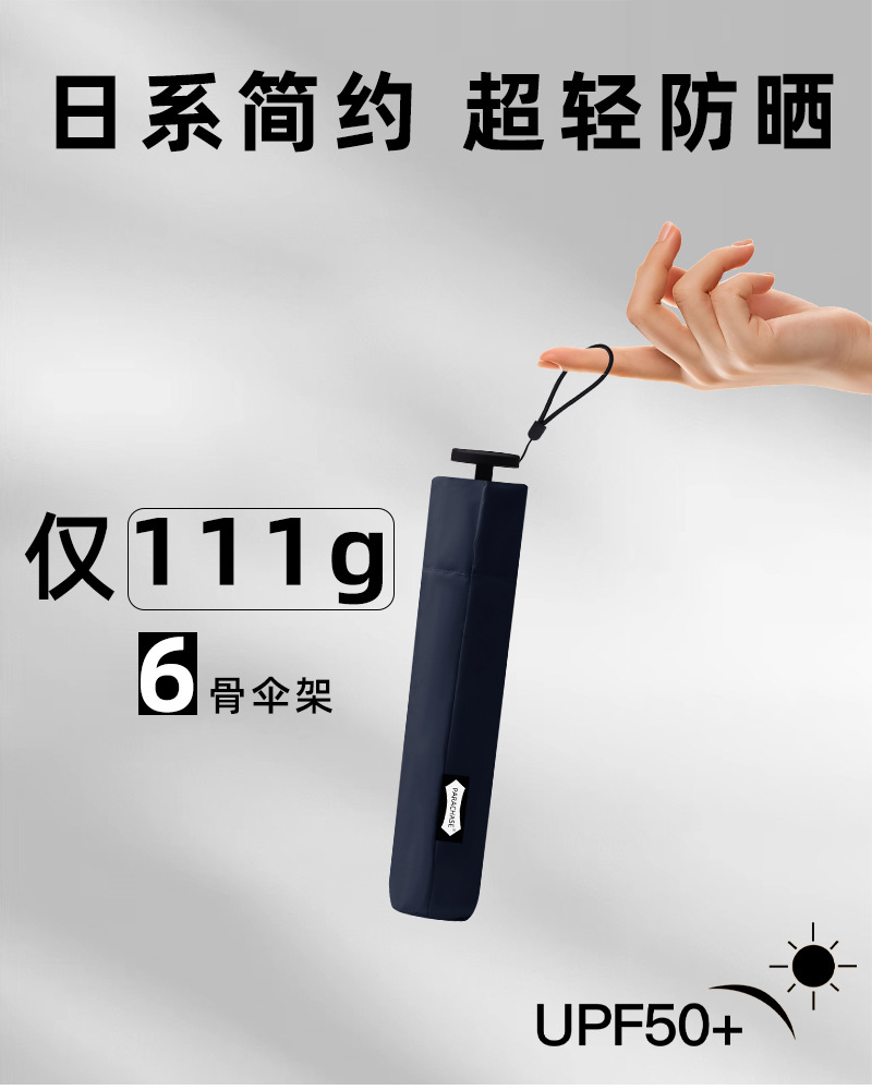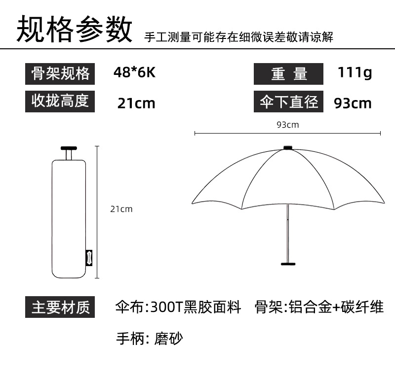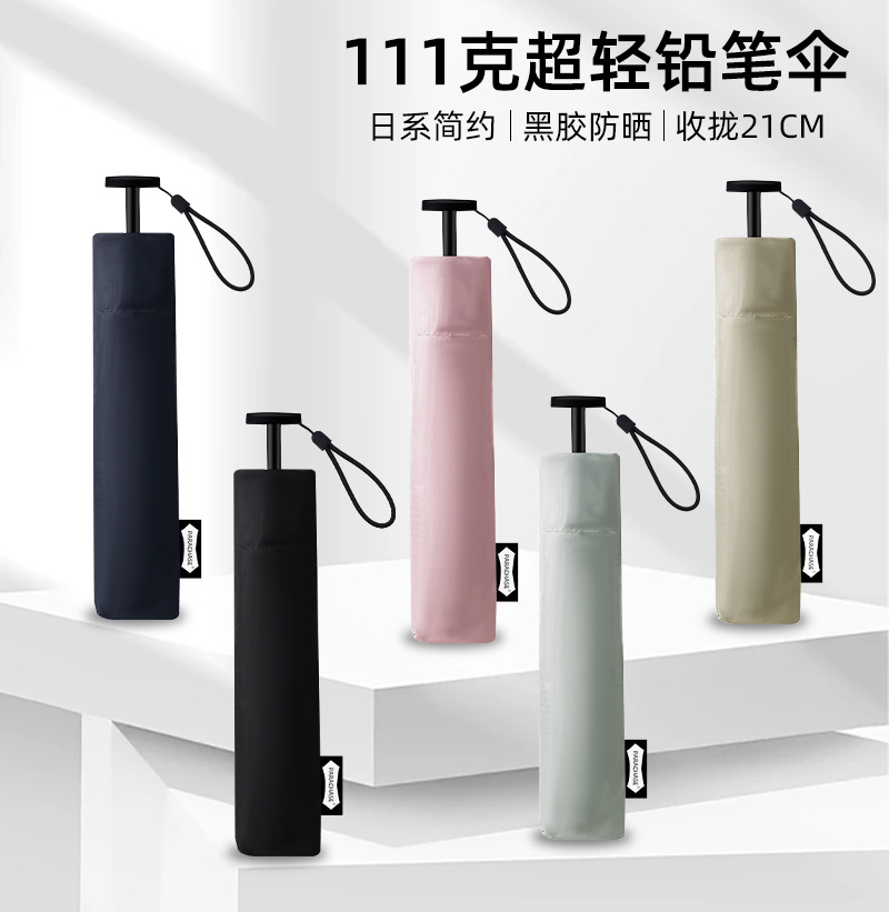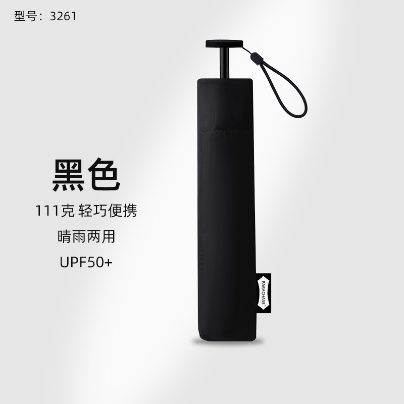 111g 초경량 3 배 우산 휴대용 작은 선 스크린 태양 우산 탄소 섬유 UV 보호 써니 우산 검은 고무 우산