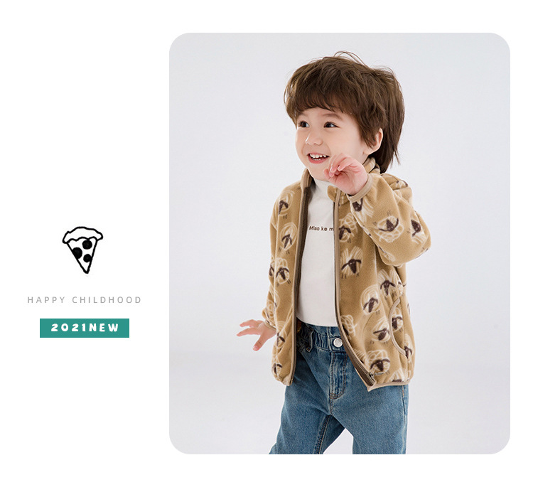 남아 코트 2023 가을 새로운 어린이 스탠드 칼라 양고기 인쇄 양털 탑 베이비 재킷 wy1579스토어 가기