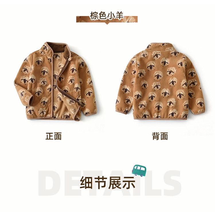 남아 코트 2023 가을 새로운 어린이 스탠드 칼라 양고기 인쇄 양털 탑 베이비 재킷 wy1579