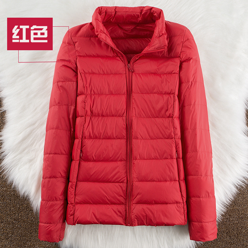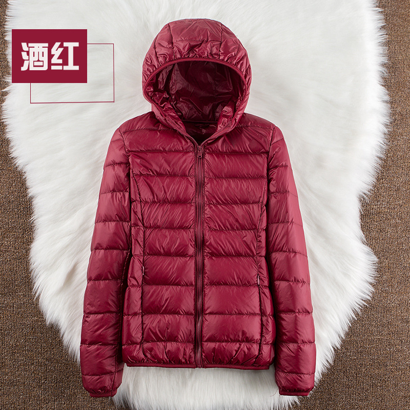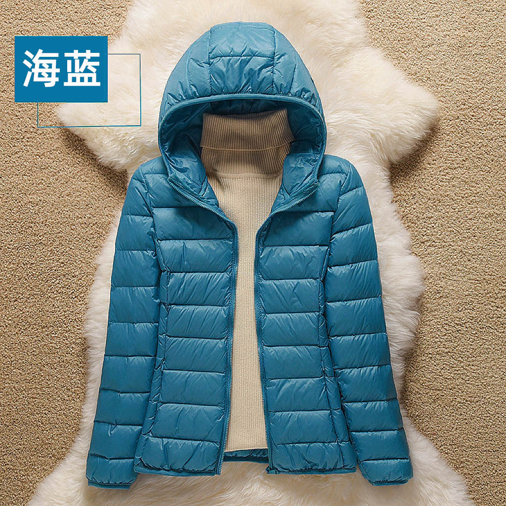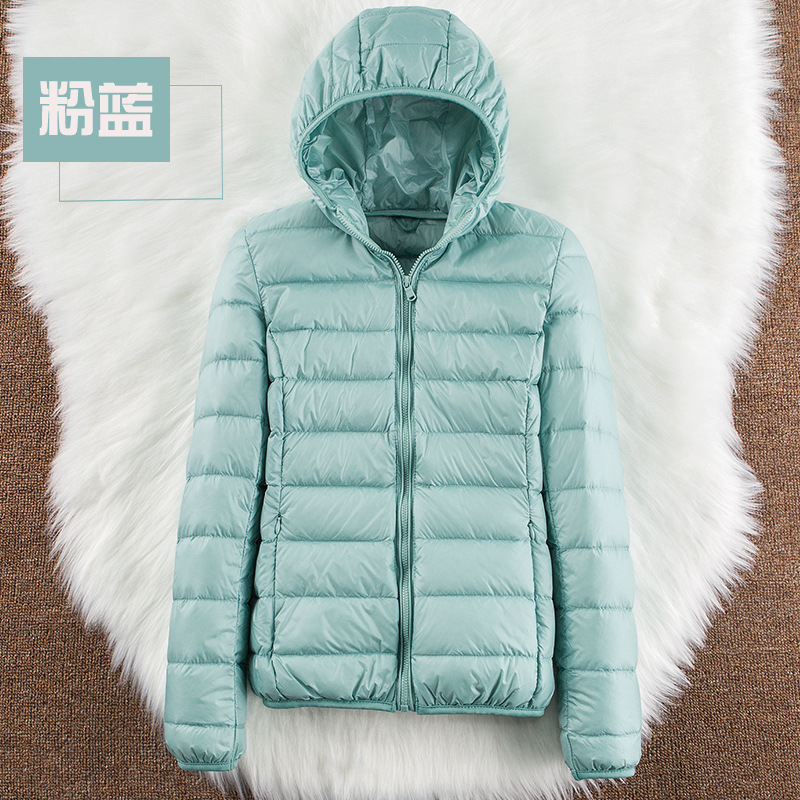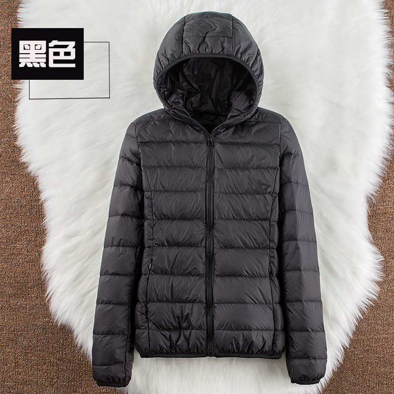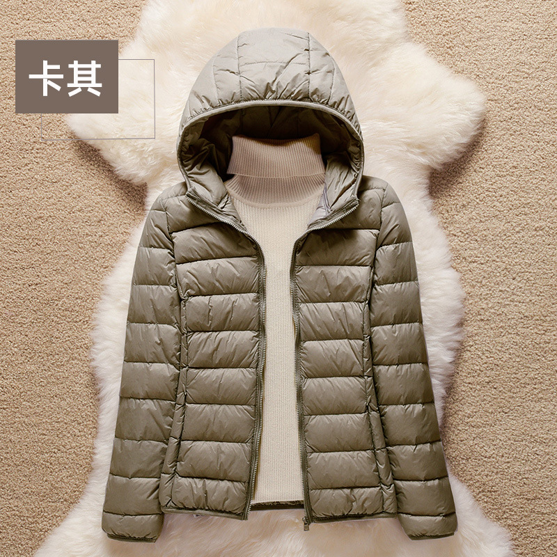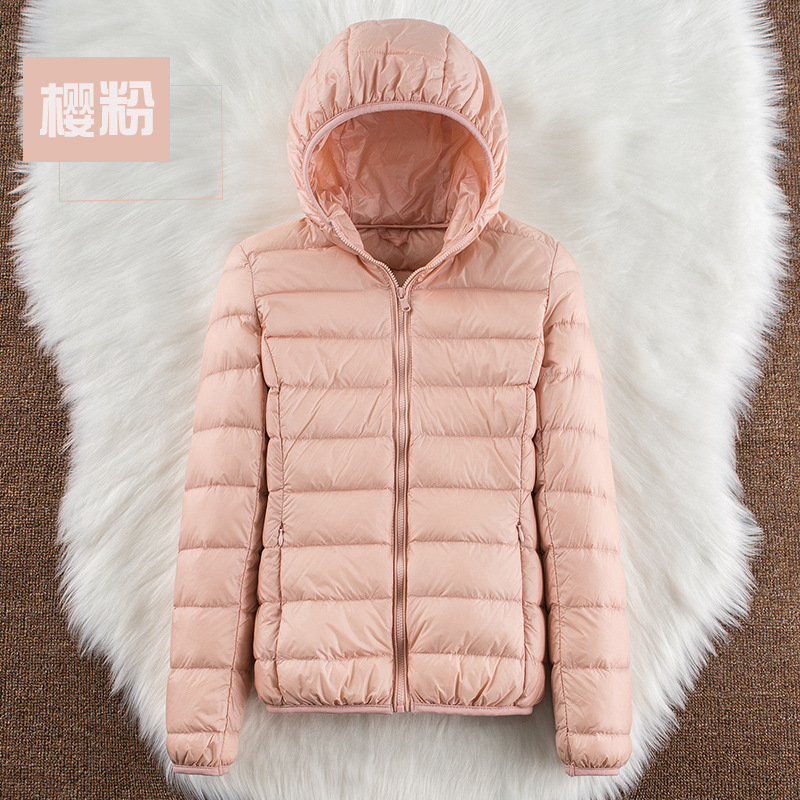 2024 새로운 경량 다운 재킷 후드 칼라 여성용 쇼트 라이트급 슬림 핏 한국식 화이트 덕 다운 재킷스토어 가기