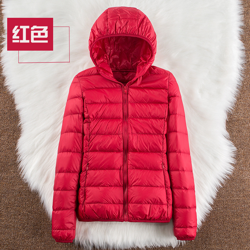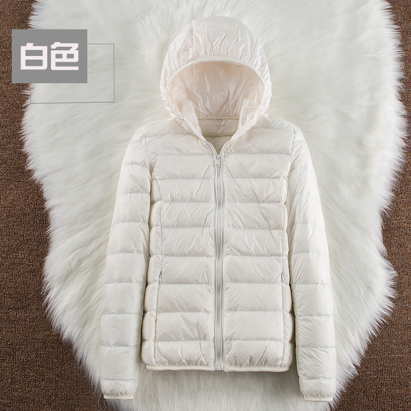 2024 새로운 경량 다운 재킷 후드 칼라 여성용 쇼트 라이트급 슬림 핏 한국식 화이트 덕 다운 재킷