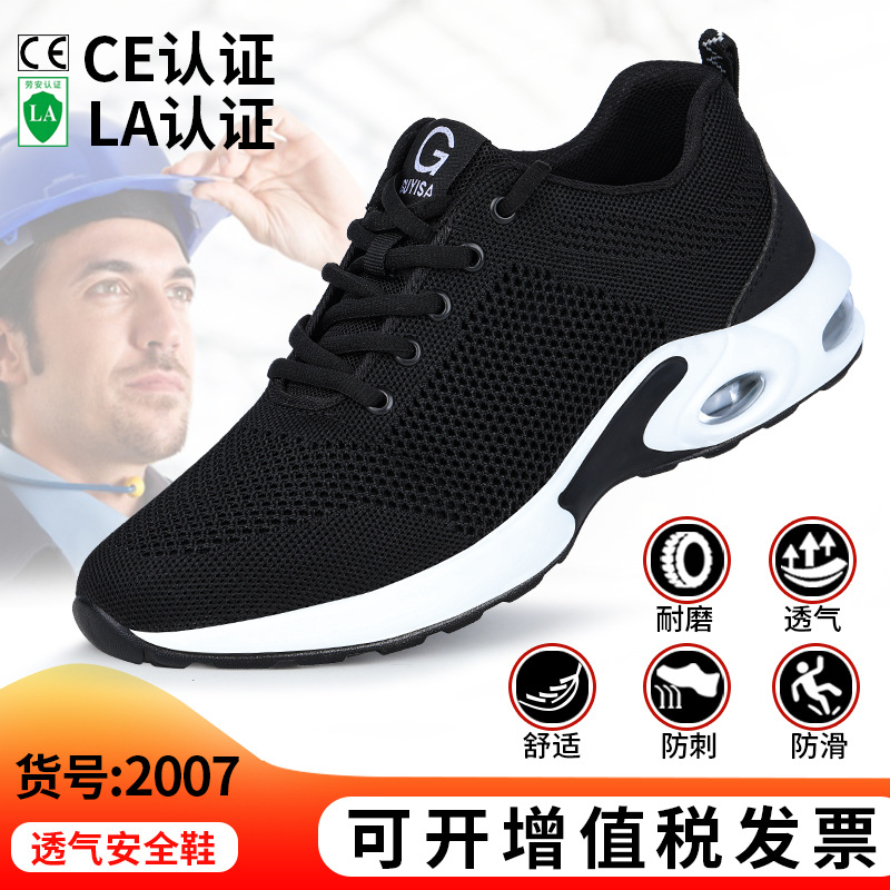 남성용 사계절용 크로스보더 작업화, 충격방지, 펑크방지, 플라이니트, 가볍고 부드러운 밑창, 안전작업화, 통기성 보호화