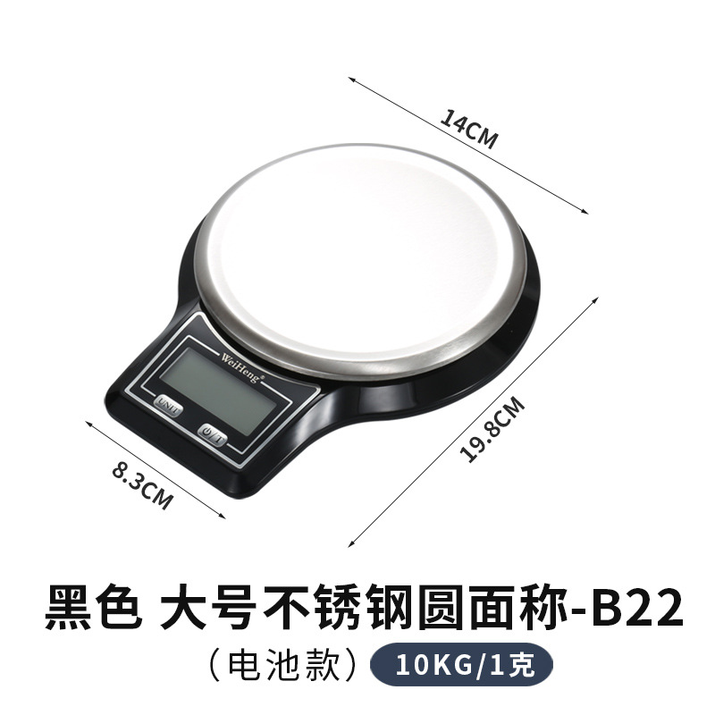 • 업그레이드 된 블랙 대형 스테인레스 스틸 라운드 표면 스케일 10kg/1G B22 (배터리 유형)