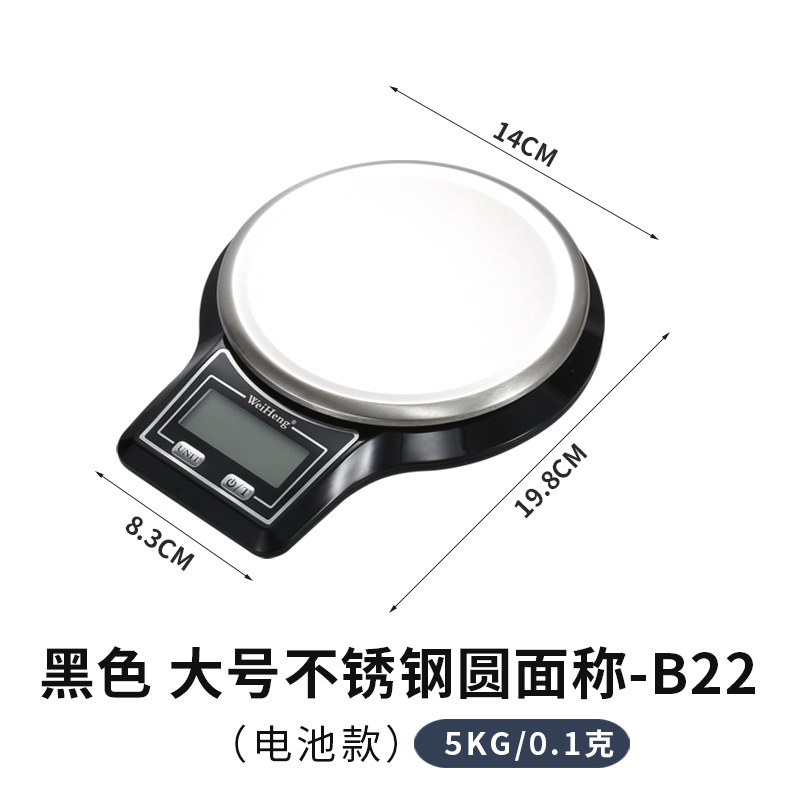 • 업그레이드 된 블랙 대형 스테인레스 스틸 라운드 표면 스케일 5kg/0.1g B22 (배터리 유형)