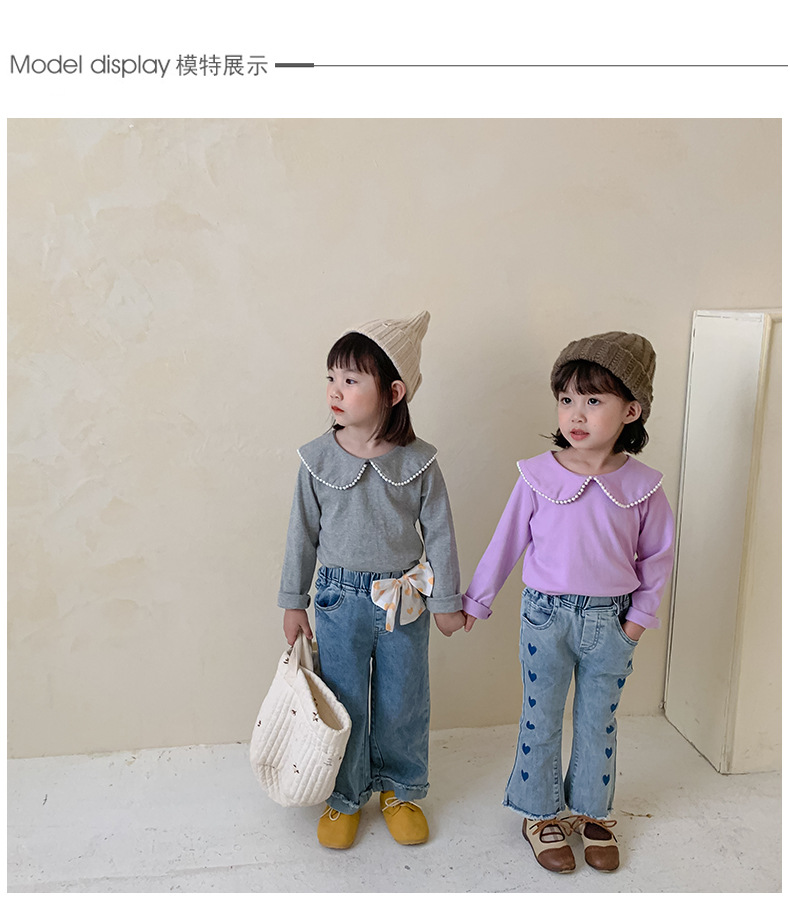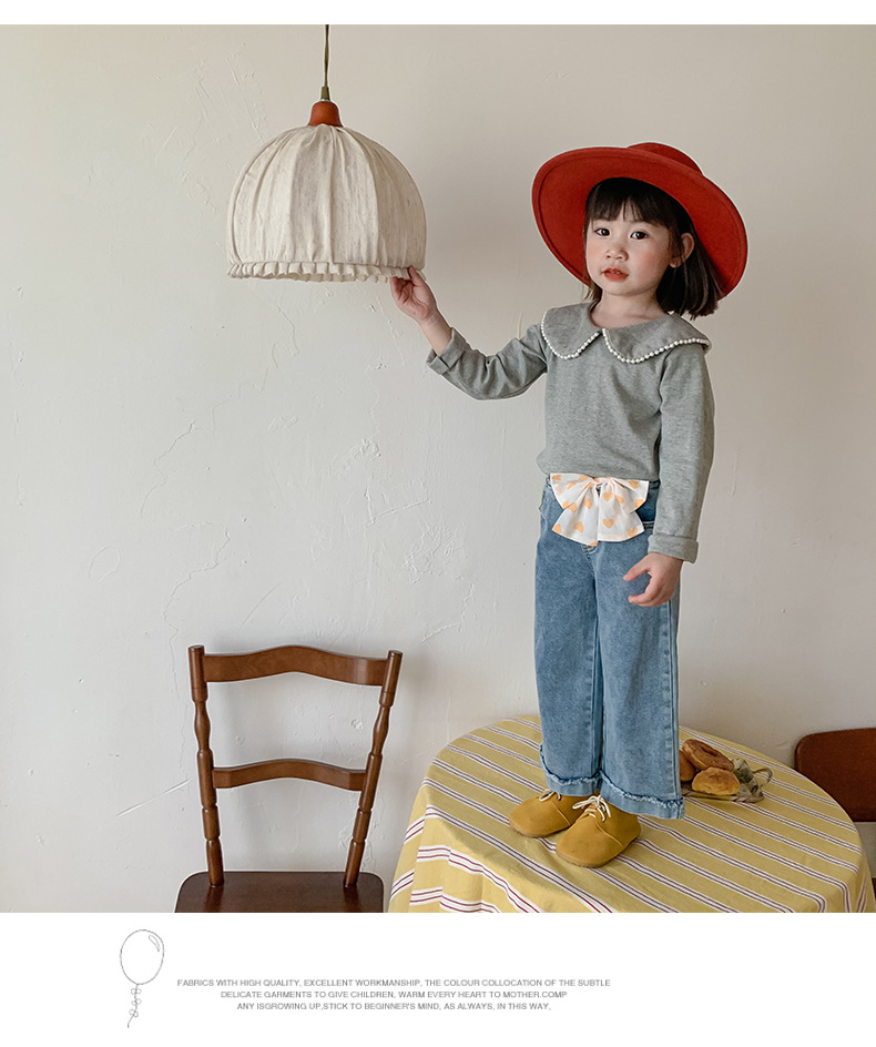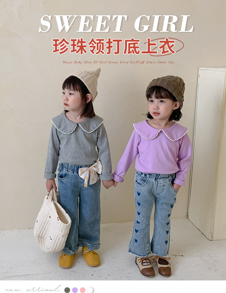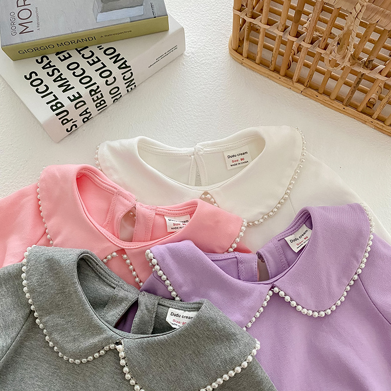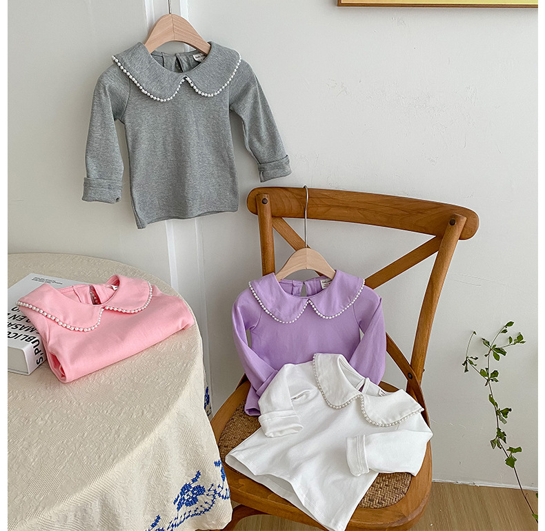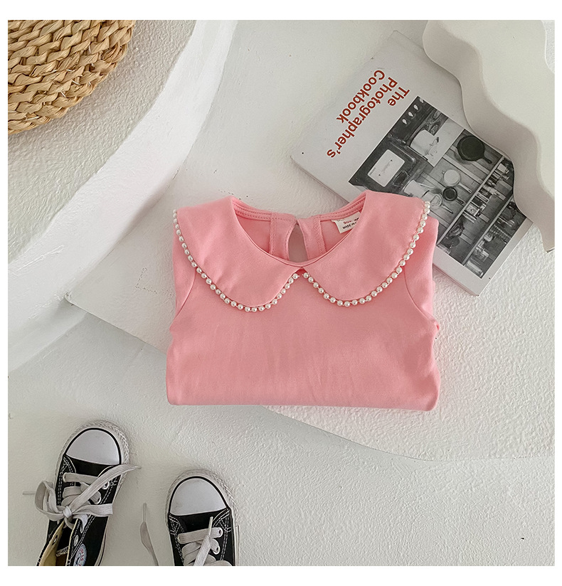 강하게 추천! Xiaoxiang 스타일 진주 여아 긴팔 티셔츠 양면 세련된 면 아동베이스 셔츠 인형 칼라 탑
