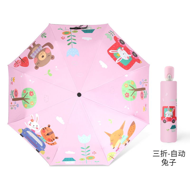 완전 자동 어린이 우산, 비와 햇빛 모두 사용 가능, 접이식 학생용 양산, 자외선 차단, 대량 도매, 만화 무늬