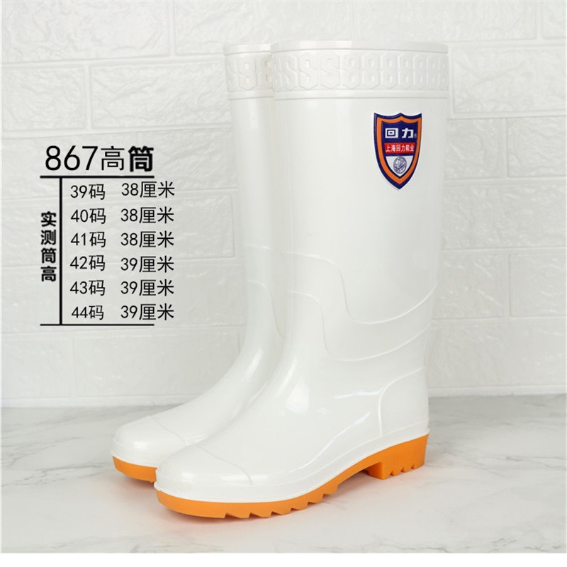 Huili 867 남성용 높은 장화 방수 내유성 흰색 식품 장화 미끄럼 방지 소 힘줄 바닥 장화 고무 워터 부츠