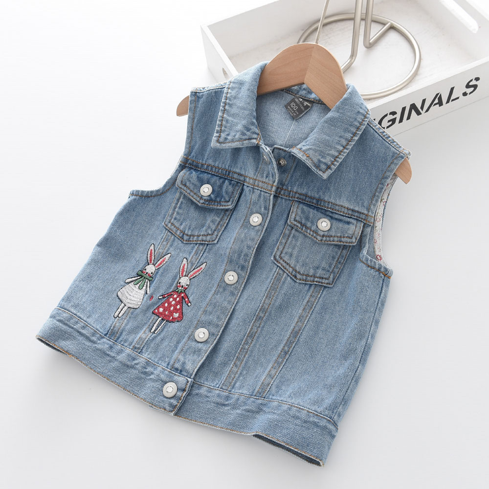 2021秋季新款 卡通小兔刺绣 女童牛仔背心马甲