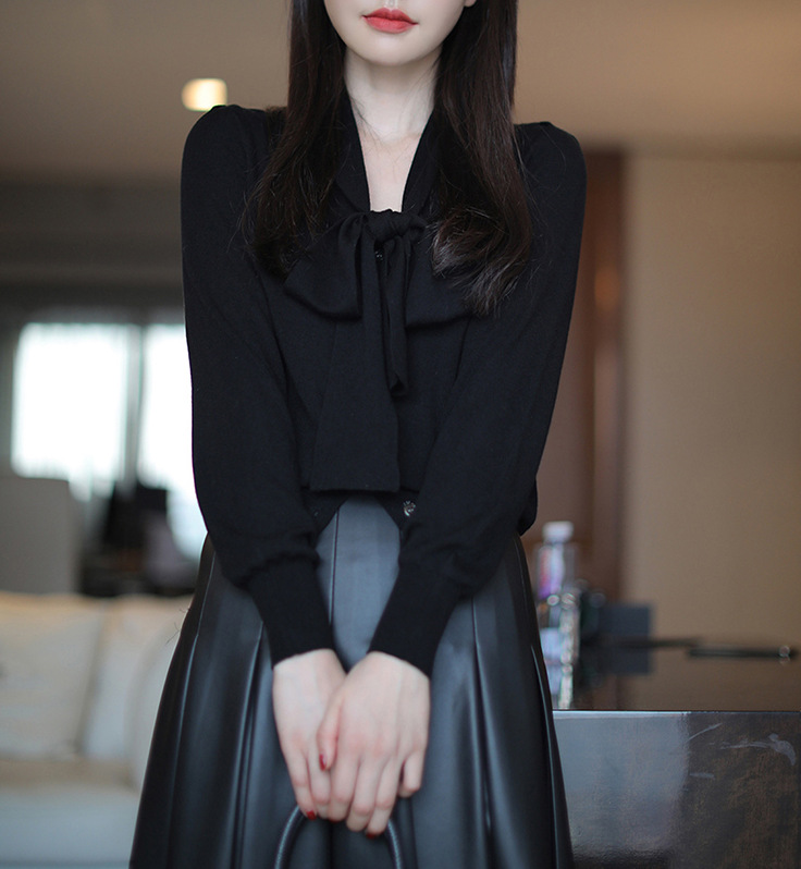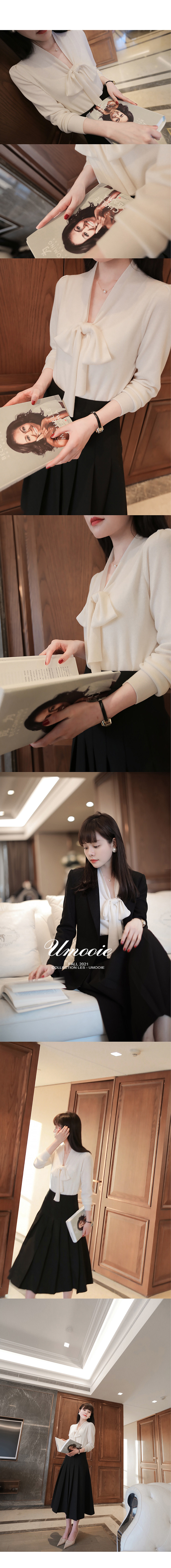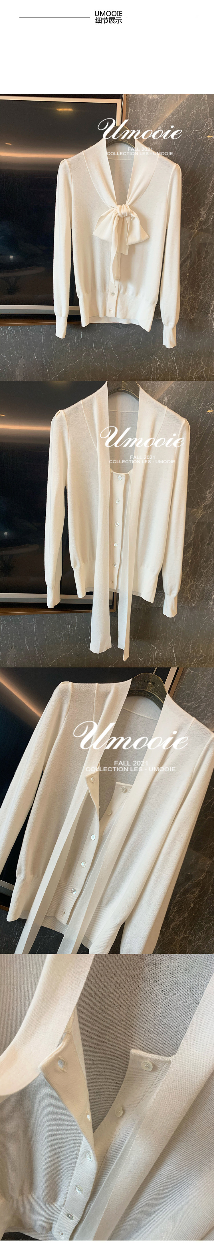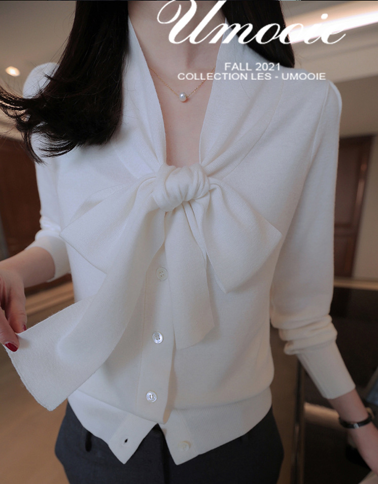 부드러운 부드러운 흰색 셔츠 리본 스웨터 울 혼방 니트 가디건스토어 가기