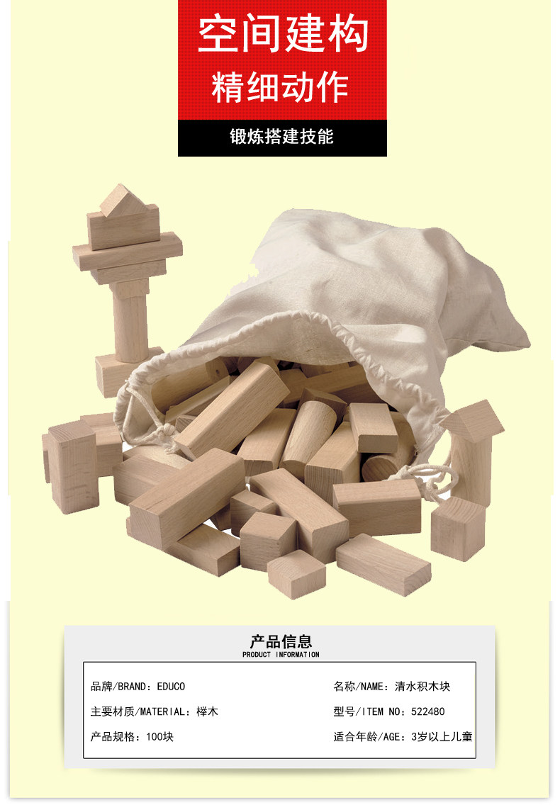 네덜란드 EDUCO 물 빌딩 블록 100 유치원 빌딩 블록 큰 통나무 3-6 세 어린이 장난감스토어 가기